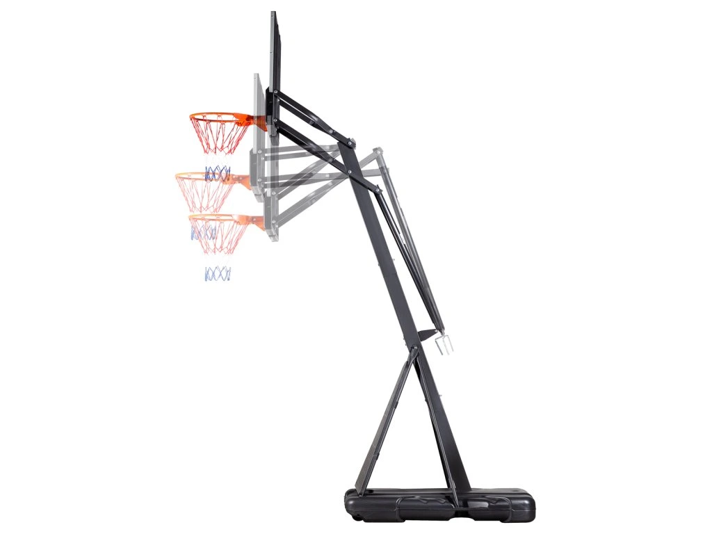 Díky možnosti nastavení výšky se koš dokonale přizpůsobí vašim potřebám. Ať už jste začátečník, nebo zkušený šampion, náš koš vám poskytne dokonalé nastavení pro maximální využití vašeho potenciálu. Změna výšky se provádí jednoduchým otáčením kliky. Výšku obruče lze plynule nastavit v rozsahu od 2,24 do 3,05 metru.