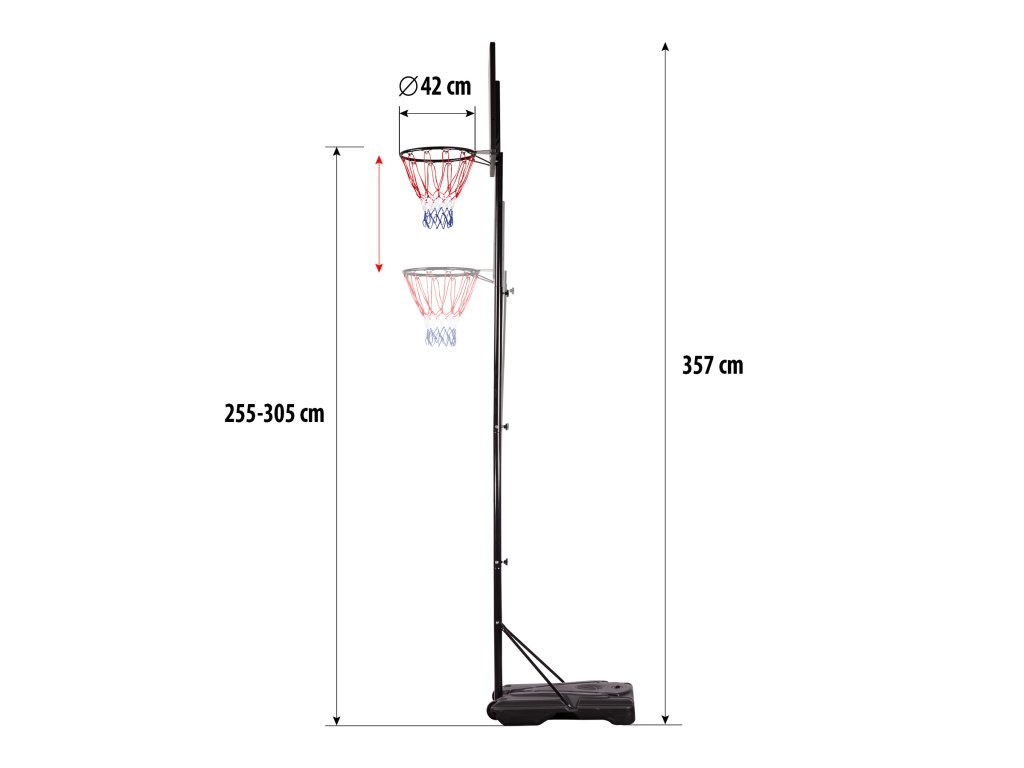 - Výška obruče od země: 2,55 - 3,05 m