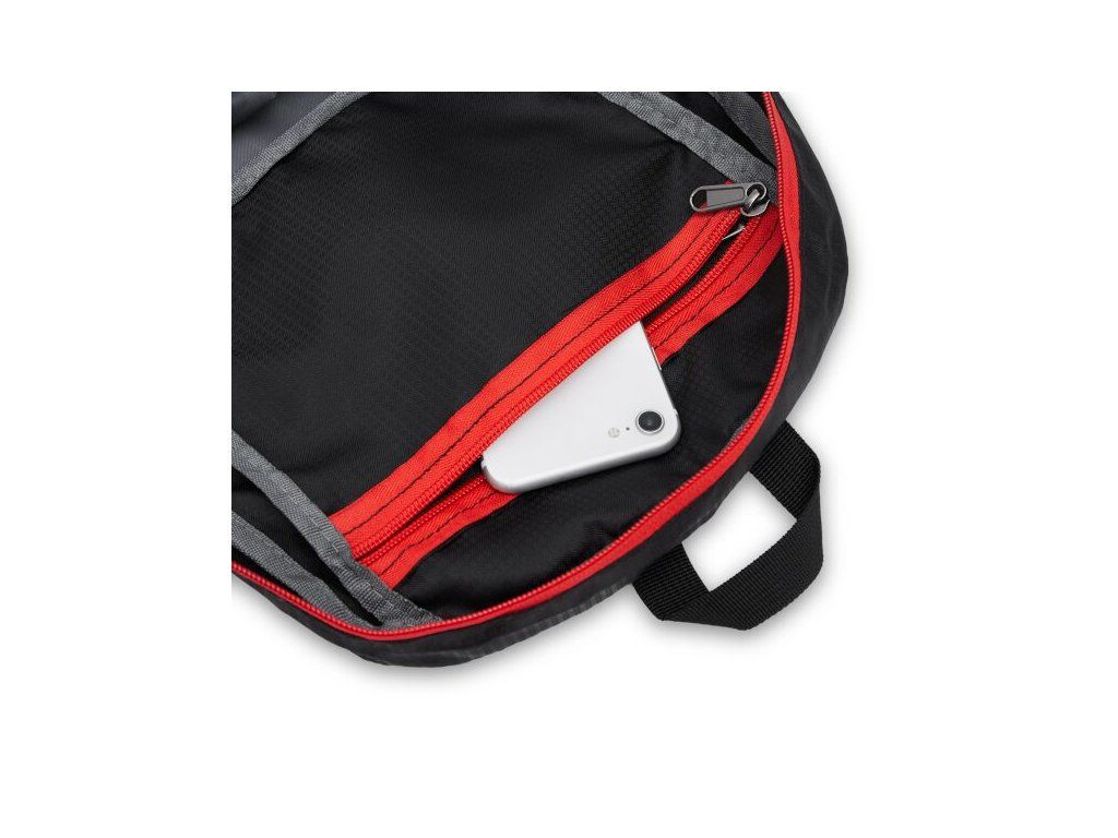 Uvnitř batohu je kapsa na zip, která zároveň slouží jako integrovaný obal.