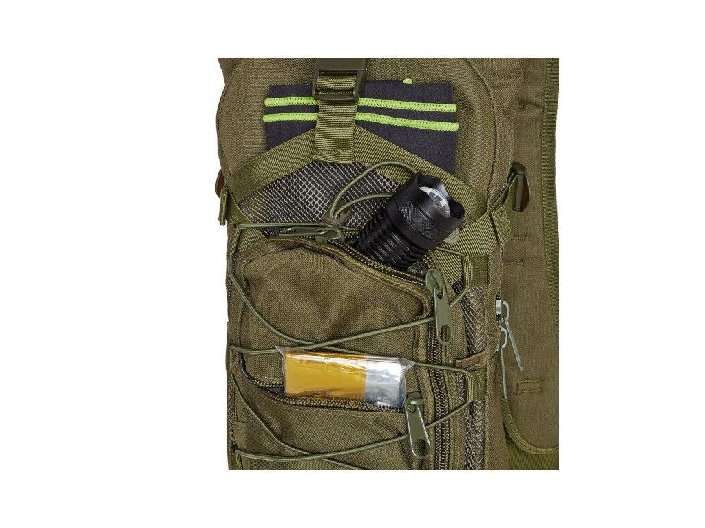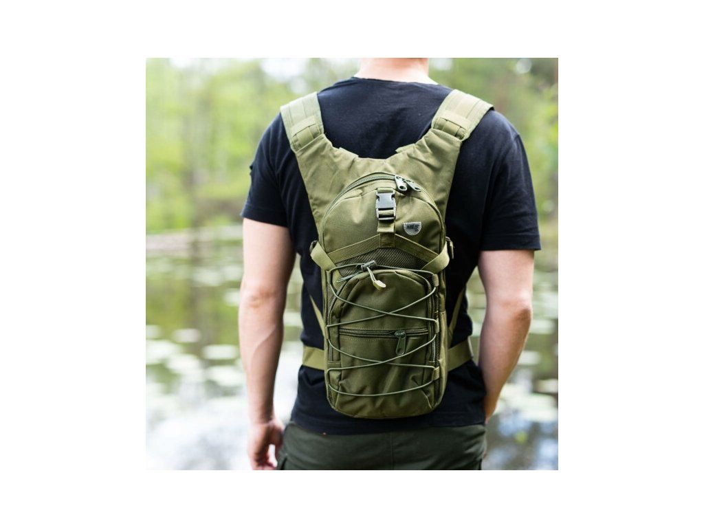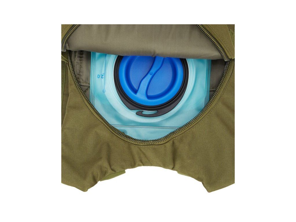 Hlavní komora batohu je opatřena přepážkou, v horní části se nachází 2 karabiny pro zavěšení hydrovaku (není součástí dodávky). Hadičku hydrovaku lze vyvést průvlaky na pravé i na levé straně pod ramenními panely. Na hlavní komoře se nacházejí další úložné prostory a to velká síťovaná kapsa s popruhem a přezkou - menší otevřená, síťovaná kapsa - 2. komora na zip - kapsa na zip (například pro mobilní telefon a peněženku) a gumová šňůra s brzdičkou, pod kterou lze přenášet například cyklistickou helmu, nebo karimatku. Po stranách batohu se nachází kompresní popruhy, které stahují hlavní komoru a obě síťované kapsy. Na horní straně je robustní ucho pro pohodlné přenášení batohu v ruce. Zadní strana a ramenní popruhy jsou polyesterové bez polstrování. Na popruzích je gumové poutko k provlečení hadičky hydrovaku a hrudní popruh, ten je výškově a délkově nastavitelný. Bederní popruh s robustní přezkou má šířku 3,5 centimetru.