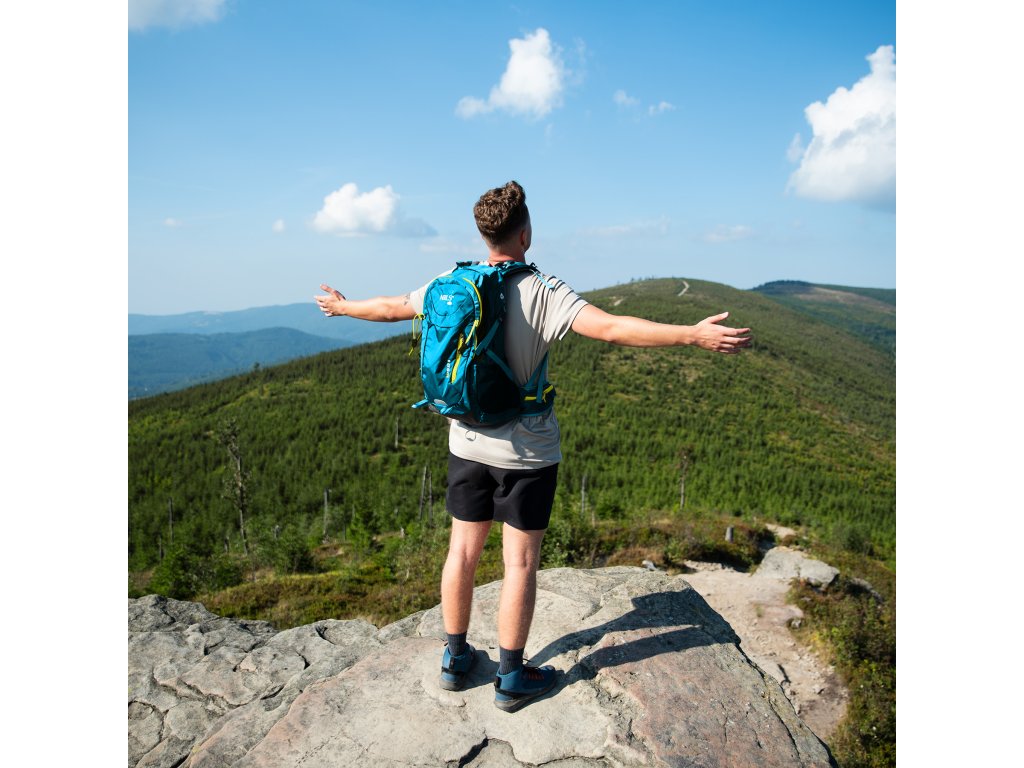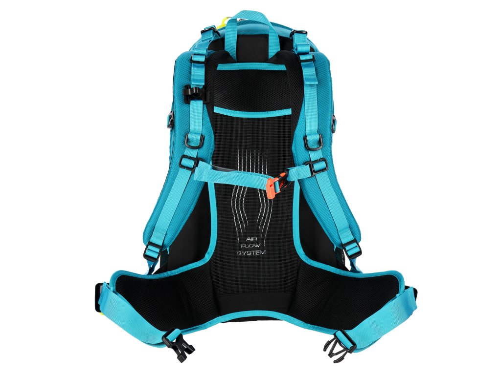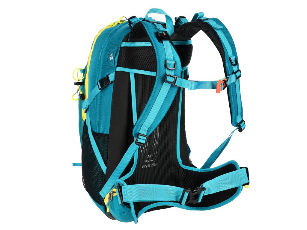 Hlavní komora na dvoucestný zip je opatřena kapsou na hydrovak, který lze zavěsit na řemínek se suchým zipem. Druhá, menší komora je také opatřena dvoucestným zipem a uvnitř se nachází 2 síťované kapsy na drobnosti. Čelní panel tvoří rozměrnou kapsu, do které se přistupuje 15 cm dlouhým, jednocestným zipem z pravé strany. Po stranách batohu jsou síťované kapsy s gumičkou v lemu, nad kapsami se nachází délkově nastavitelné popruhy s přezkou, pod které lze umístit například vyšší láhev. Na bederním pásu jsou 2 kapsy na zip, do kterých se vejdou například klíče, nebo multitool. Z čela batohu se nachází 2 gumová poutka a 2 smyčky pro přenášení turistických holí.