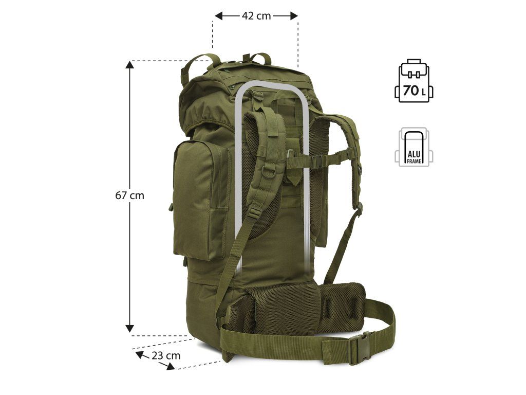 Armádní batoh NC3901 Eagle od společnosti NILS Camp je volbou pro každého, kdo si cení spolehlivosti, funkčnosti a připravenosti do jakýchkoli podmínek. S úctyhodným objemem 70 litrů se do něj snadno vejde veškeré vybavení potřebné během několikadenní expedice - od oblečení a jídla až po stan a karimatku. Je ideální volbou pro milovníky trekkingu, bushcraftu a survivalu, stejně jako pro ty, kteří se chystají na expedice v náročném horském nebo lesním terénu.