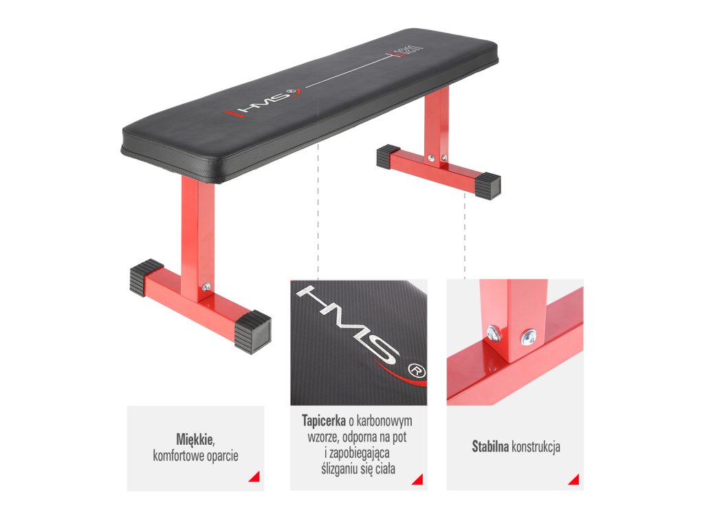 Rovná lavice HMS L1211 je ideální pro veškeré základní cviky s činkami, osami či vlastní vahou. Robustní konstrukce dokáže unést až 100 kg zátěže a pohodlná, vysoce polstrovaná opěrka zaručí pohodlný trénink.