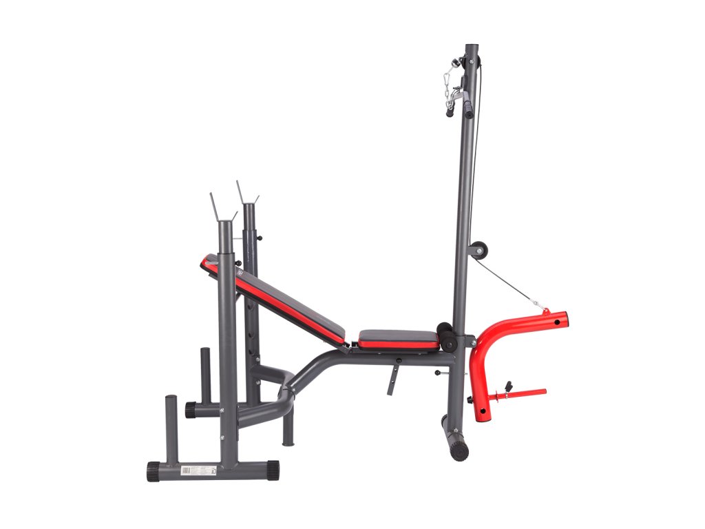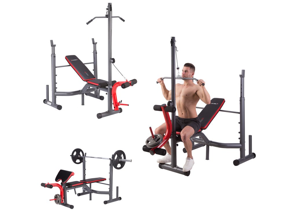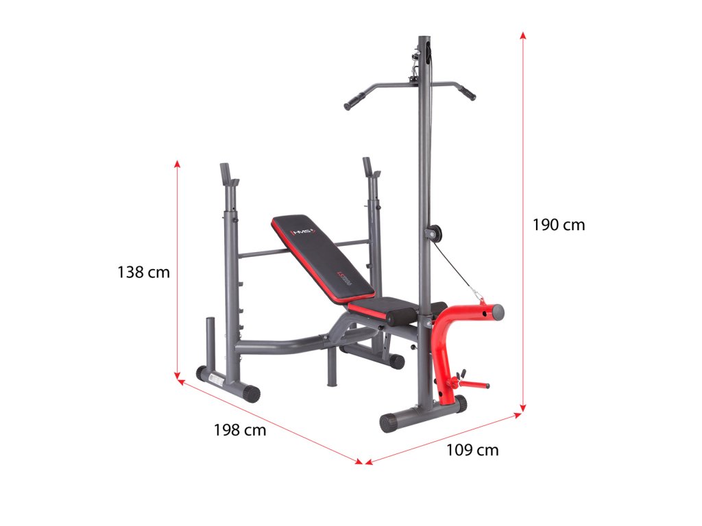 HMS LS7206 je ideálním kusem vybavení do domácí posilovny. Produkt v sobě kobinuje variabilní posilovací lavici, stojan pod velkou činku, modlitebník, předkopávání, zakopávání, horní kladku a stojan na kotouče.