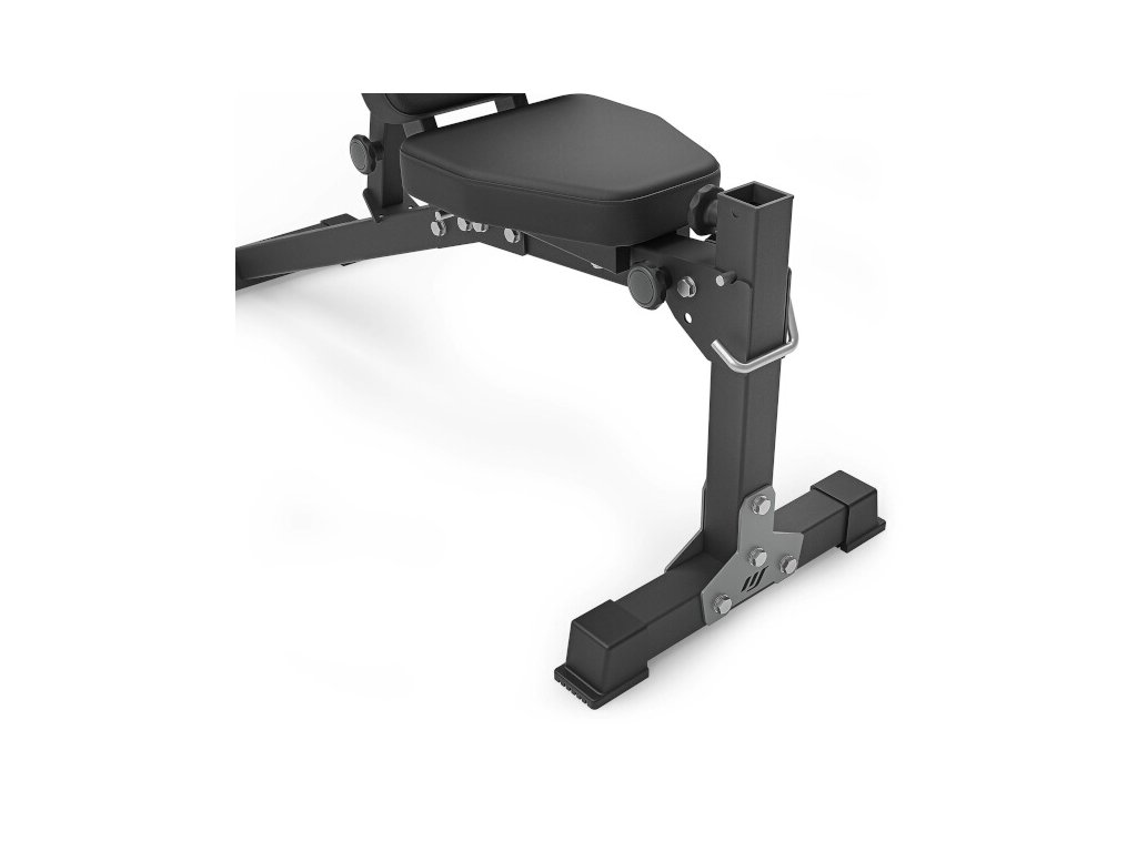 Variabilní, posilovací lavice MARBO Sport MS-L114 ve verzi 2.0. Rám je vyroben na precizních CNC strojích z ocelových profilů o rozměru 50 x 50 x 2 milimetry, tento postup výroby zaručuje vysokou přesnost, stabilitu a nosnost výsledné konstrukce. Laserem vypalované otvory umožňují opravdu precizní nastavení zádové opěry do 8-mi poloh, tato jemná regulace umožňuje přizpůsobení posedu opravdu kterémukoliv cviku.