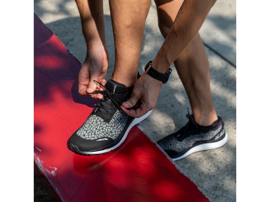 Buďte vidět a zůstaňte v pohodlí! To je ve zkratce hlavní poslání nejnovější varianty skandinávského bestselleru a jedné z nejpohodlnějších běžeckých bot na trhu, modelu Salming Prime Reflex. Hlavní změnou oproti standardní řadě je lehce přepracovaná konstrukce svršku, kterou po většině její plochy zdobí speciální reflexní potisk. Ten zejména za zhoršených světelných podmínek funguje jako skutečně kvalitní bezpečnostní prvek, díky kterému budete opravdu jen velmi těžko k přehlédnutí.