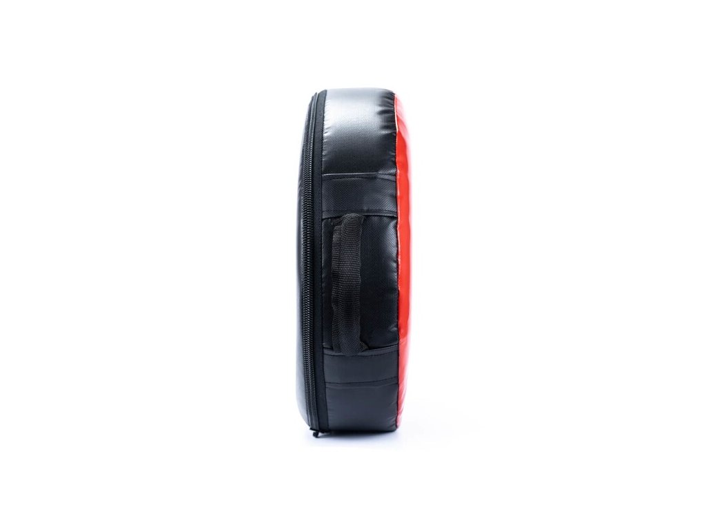 Svrchní materiál je vyroben z plavilu, vícevrstvého, patentovaného materiálu, který používáme na naše boxovací pytle. Výplň tvoří speciální PUR pěna, která je odolná vůči jakkoliv silným úderům a vždy se vrátí do původního tvaru. Tloušťka 12 cm zajišťuje pohlcení veškeré energie z úderů a trenérovi tak nehrozí zranění. Pro pohodlné držení je TO-Red opatřen madly.