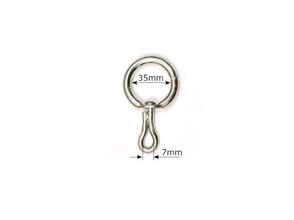 Svařované, otočné očko ze silného ocelového drátu o průměru o 7 mm. Očko je otočné o 360°a zabraňuje zamotání řetězů nebo lan připevněných ke kroužku.