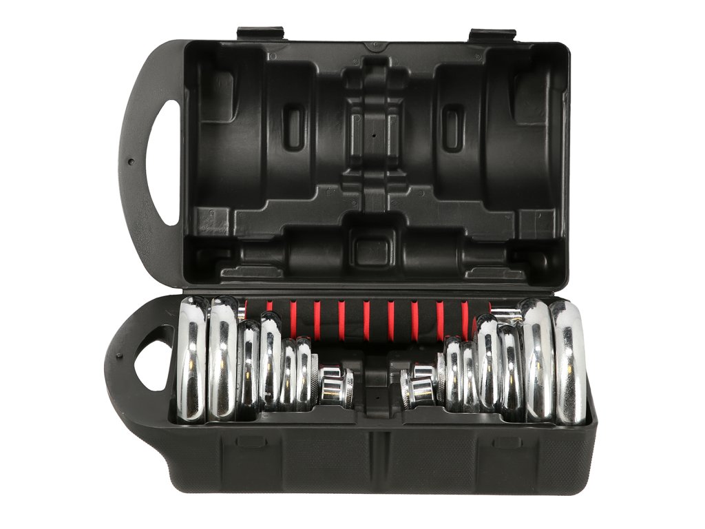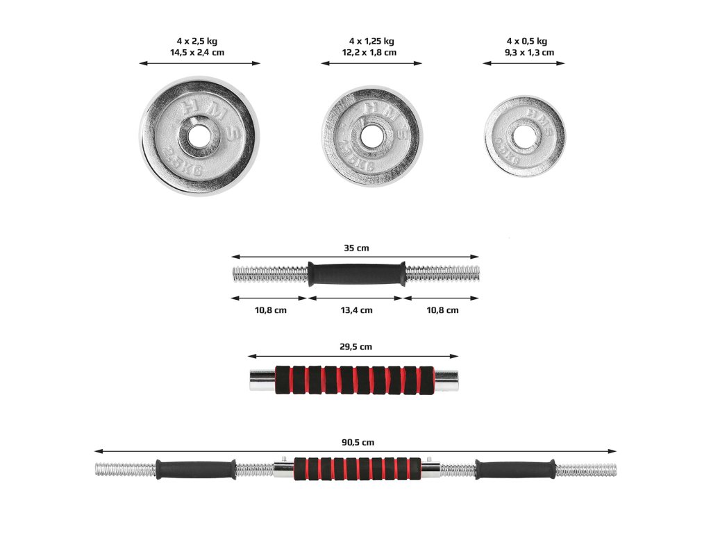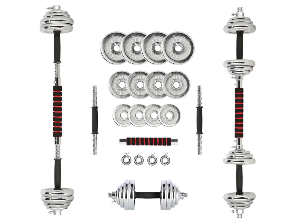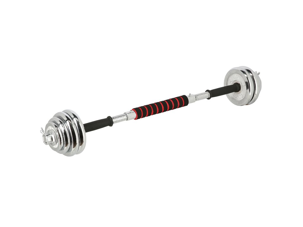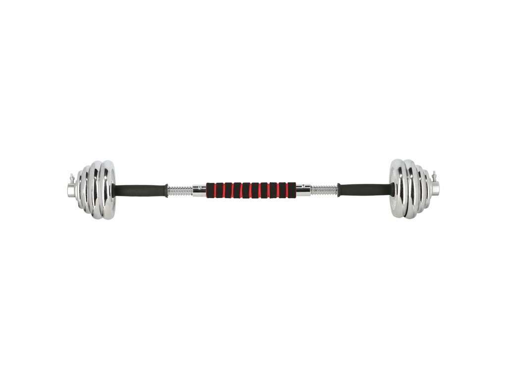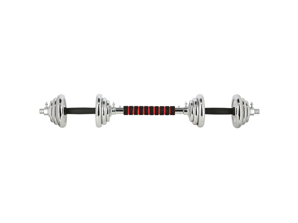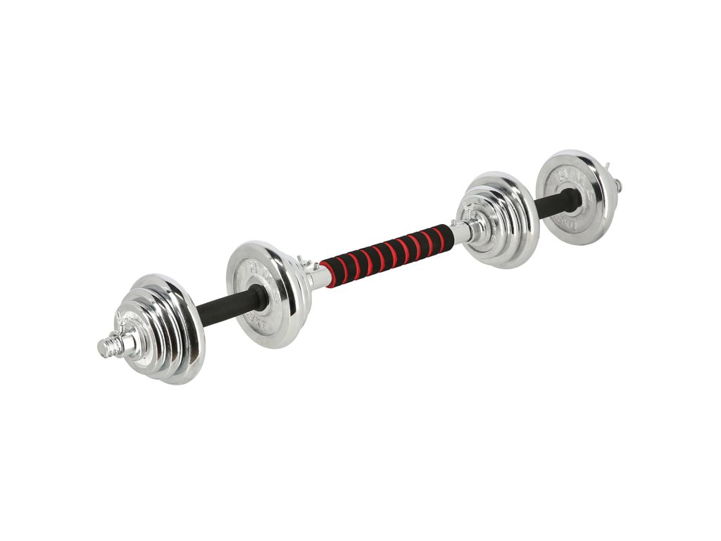 Speciální spojovací díl je po stranách opatřen závity, do nichž se jednoduše všroubují obě činky, toto řešení šetří náklady a místo ve Vaší domácí posilovně. Sada obsahuje 2 krátké, nakládací osy opatřené ergonomickým úchopem, spojovací díl, 4 zámky a 12 kotoučů.