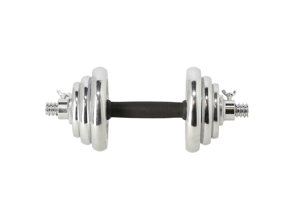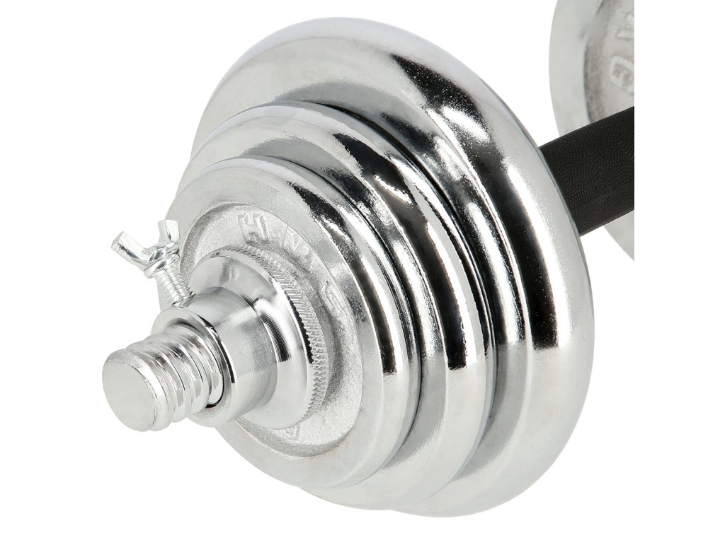 Činky jsou vyrobeny z vysoce kvalitní, chromované oceli, která je zárukou dlouhé životnosti. Kotouče se proti posunutí zajišťují šroubovacími zámky, které jsou dodatečně jištěny šroubem s křídlovou matkou.