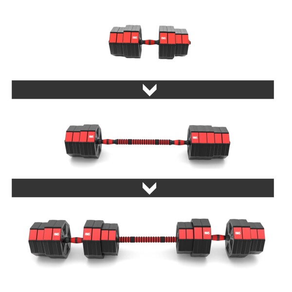 Kompletní nakládací sada dvou jednoručních a jedné obouruční činky o celkové hmotnosti 40 kilogramů, to je HMS SGC40. Kotouče jsou vyrobeny z tvrdého plastu, který je vyplněn cementem. Obouruční osa je spojovacím dílem, do kterého se všroubují hřídele jednoručních činek. Nakládací trny jsou opatřeny závitem a závaží se zajišťuje pomocí hvězdicových matic. Šestihranný tvar kotoučů navíc zamezuje jejich odvalování. Činky se Vám tak nikam neodkutálí a budete je mít vždy tam, kde jste je odložili. Nakládací činky patří ke klasickému vybavení každé domácí posilovny.
