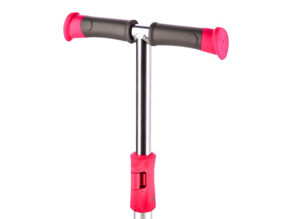Tři kolečka jsou garancí vysoké stability. Teleskopická řídítka jsou pevná a slouží primárně pro udržení rovnováhy. Manévrování se provádí pomocí přenášení váhy na jednu, nebo druhou stranu. Díky řízení pomocí přenášení váhy je koloběžka maximálně bezpečná a nehrozí její převrhnutí. Gripy na řídítkách jsou vyrobeny z gumy pro jistý úchop. Konce gripů jsou opatřeny zarážkou, která zamezuje sesmyknutí dlaně z gripu a zároveň dlaň chrání, když dítě náhodou zavadí řídítkem o překážku - například o fasádu domu. Stupátko není polepeno klasickým griptapem, ale gumovou podložkou. Kolečka jsou osazeny ložisky ABEC 7 pro plynulou jízdu. Zadní blatník slouží jako nášlapná brzda pro bezpečné zastavení koloběžky.