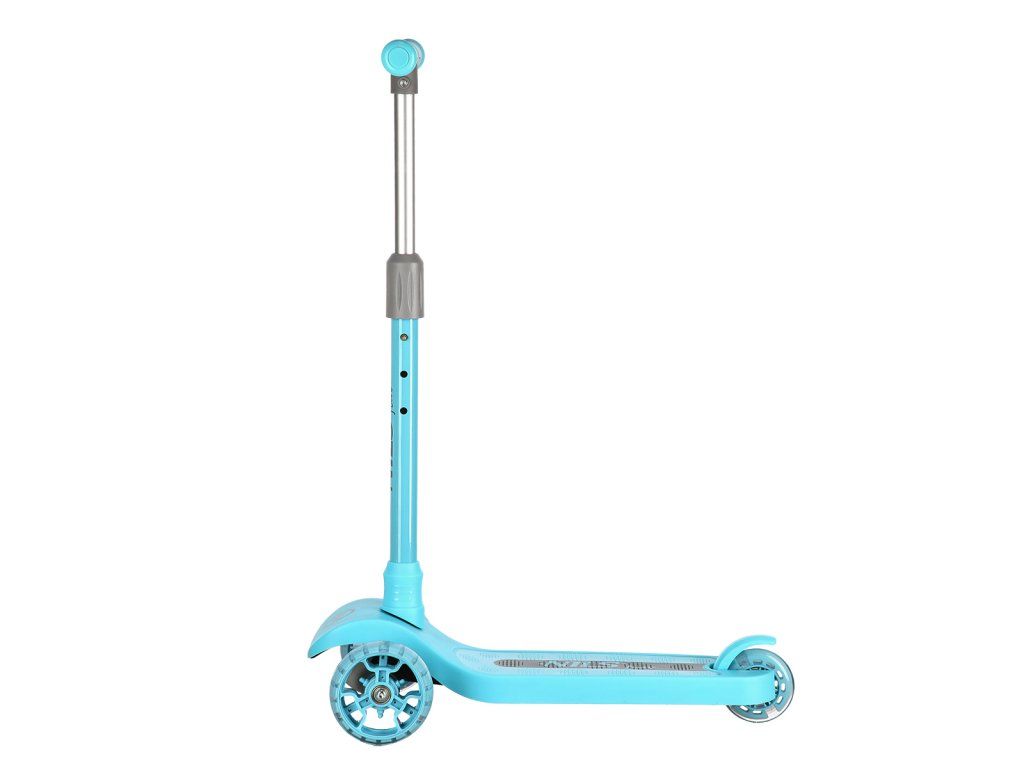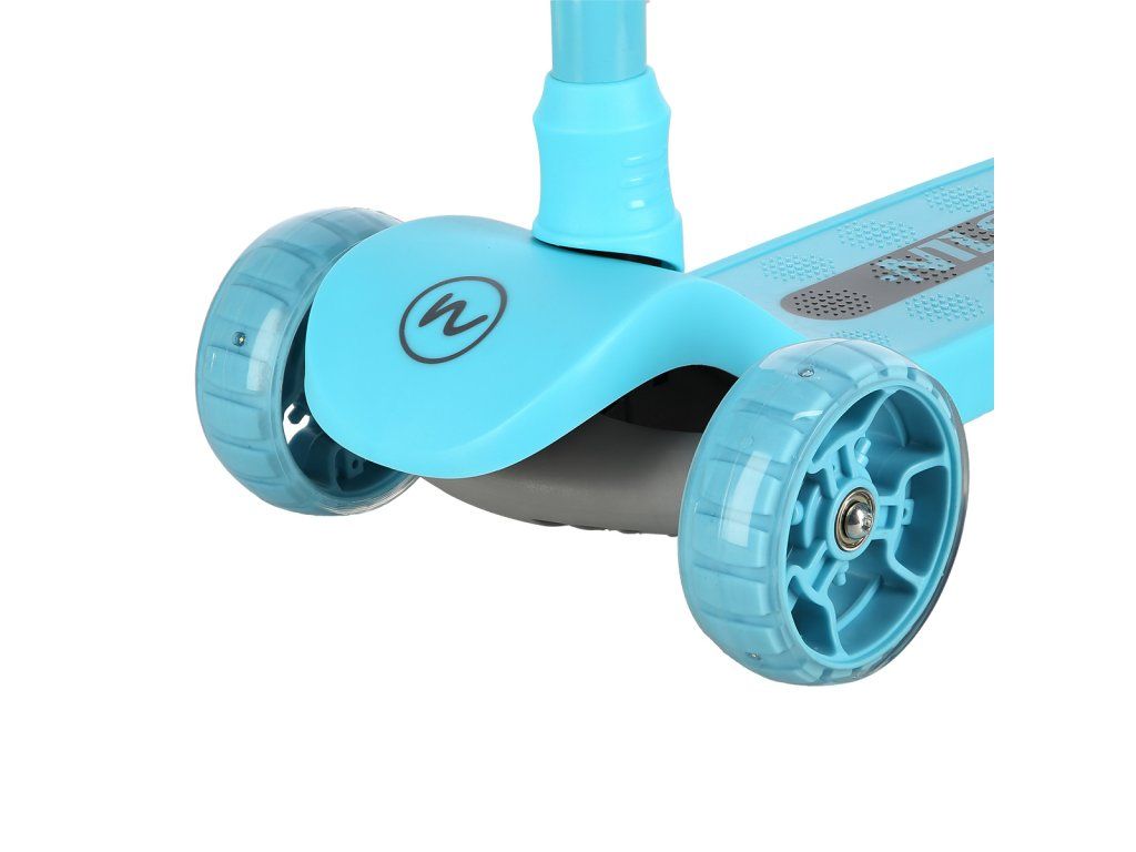 Přední kolečka o průměru 120 milimetrů jsou osazena bílími LED diodami, zadní kolečko o průměru 90 milimetrů diodami barevnými. Svítící LED diody slouží jako zajímavý, vizuální prvek, zvyšují zájem dětí a v neposlední řadě zvyšují viditelnost koloběžky například za šera. Kolečka svítí automaticky během jejich otáčení. Dále jsou kolečka osazeny ložisky ABEC 7 pro plynulou jízdu. Zadní blatník slouží jako nášlapná brzda pro bezpečné zastavení koloběžky.
