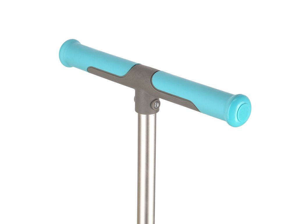 Teleskopická řídítka jsou výškově nastavitelná do 3 poloh (72,5 - 76,5 - 81 cm od země). Změna nastavení výšky se provádí uvolněním objímky, stisknutím pojistného čepu a vysunutím, nebo zasunutím vnitřní tyče řídítek. Pro úsporu místa lze řídítka demontovat - k tomu je potřeba stisknout tlačítko, které je přístupné ze spodní strany koloběžky. Tento systém sklápění je maximálně bezpečný a nemůže dojít k nechtěnému sklopení během jízdy. Gripy na řídítkách jsou vyrobeny z kombinace plastu a gumy pro pevný úchop, šířka řídítek je 32 centimetrů.