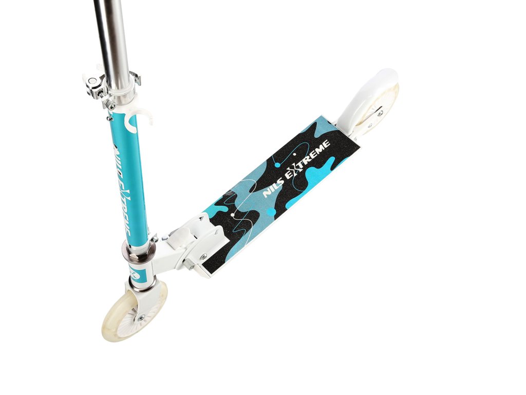 Skládací koloběžka NILS Extreme HD505 je určená především dětem. Hlavní předností tohoto modelu jsou polyuretanová kolečka o průměru 120 milimetrů, které zaručují pohodlnou jízdu. Koloběžku lze složit, takže při uskladnění nezabírá mnoho místa a zároveň si ji můžete brát téměř kamkoliv sebou ať už jedete na výlet například vlakem a nebo pokud jedete autem na dovolenou do zahraničí. Dalšími výraznými prvky jsou protiskluzová nášlapná plocha, madla z pěnového materiálu a zadní přítlačná brzda. Klademe důraz především na atraktivní vzhled a kvalitní provedení, díky kterému máte jistotu, že kupujete kvalitní koloběžku jenž potěší a zároveň i ochrání. Chcete-li pro bezpečnost udělat maximum, nezapomeňte se porozhlédnout po přilbě a chráničích.