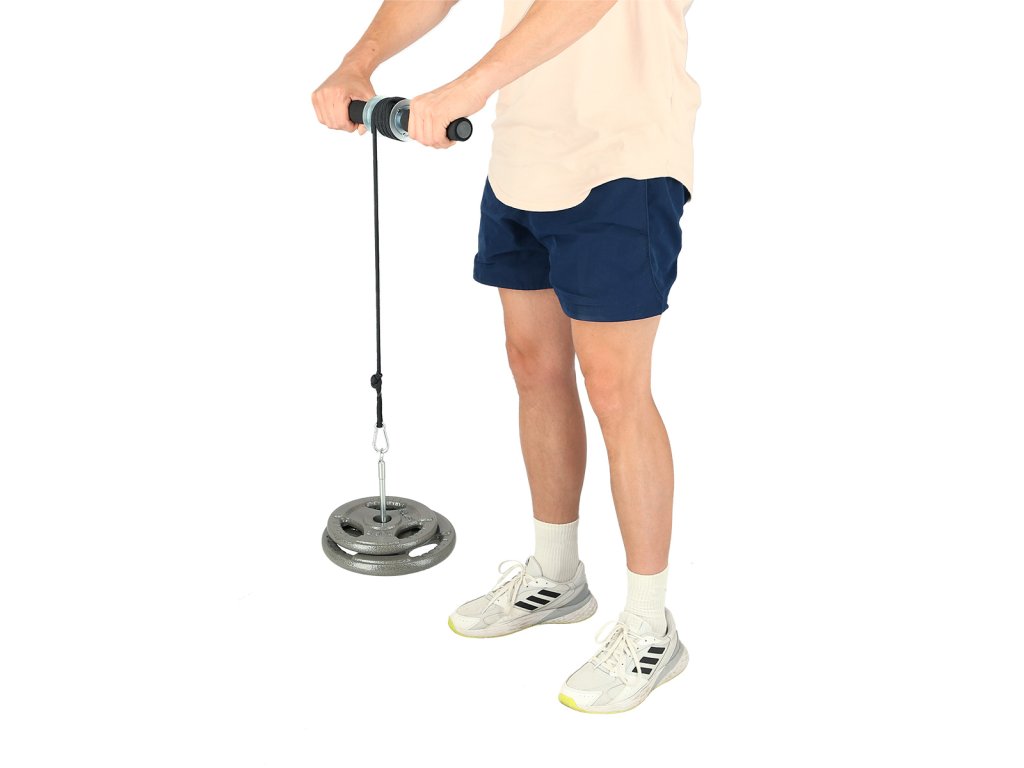 Posilovač předloktí F 4420 zařízení pro svalové cvičení předloktí. Rolováním lanka, na jeho konci jsou zavěšené závaží, zatěžuje svaly předloktí v plném rozsahu po celou dobu cvičení. Jednoduchá karabina na konci lana umožňuje snadno a pohodlně měnit zatížení. Rukojeti jsou potaženy pěnou zaručují bezpečnější uchopení a zabraňuje vyklouznutí z rukou.