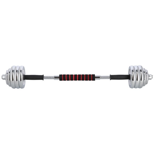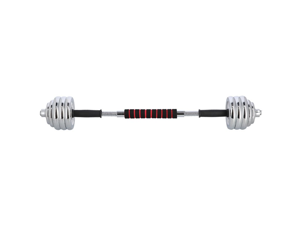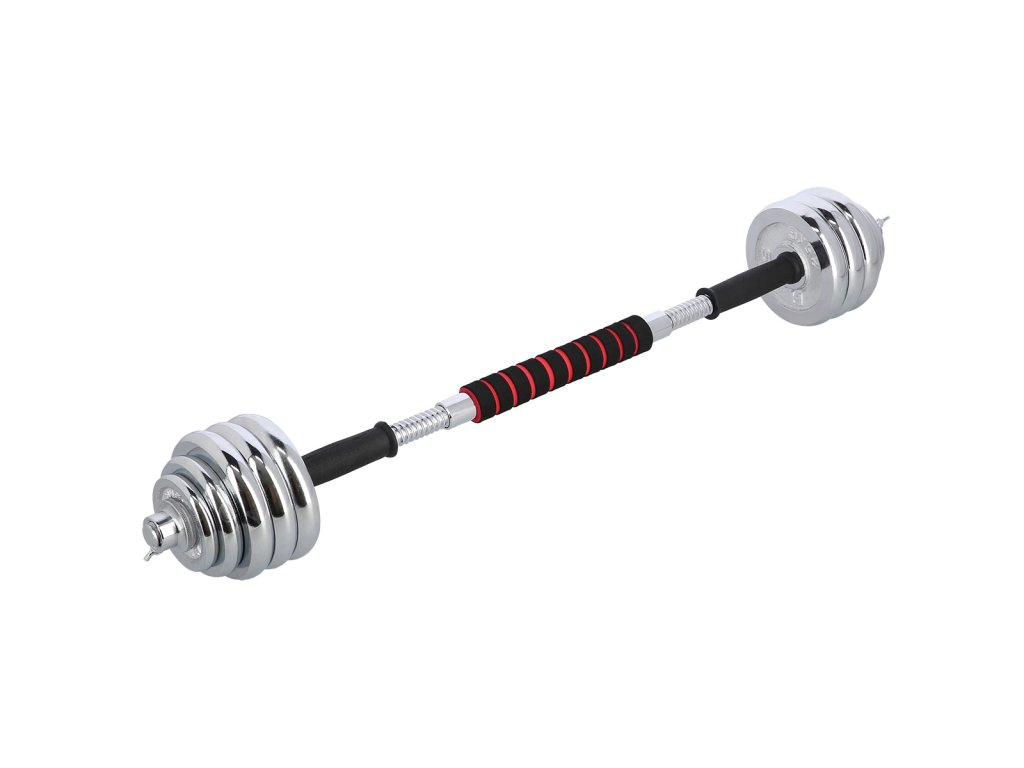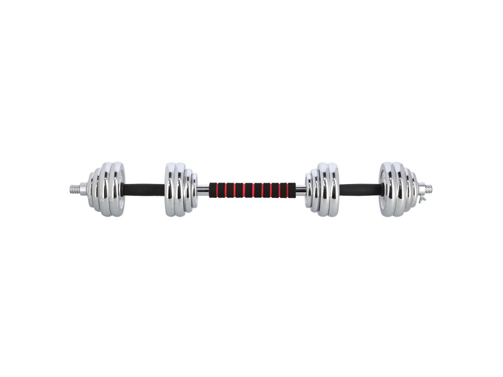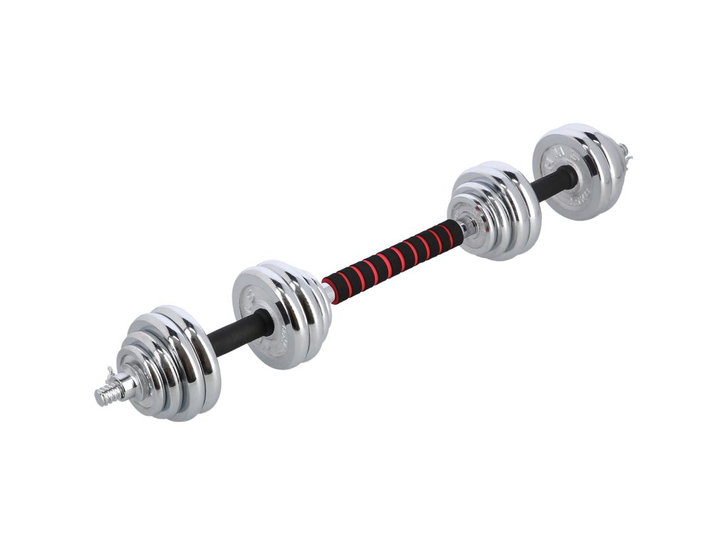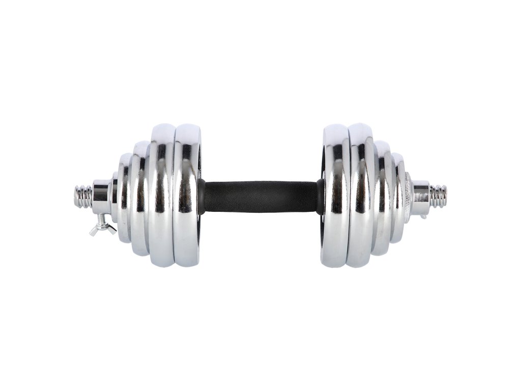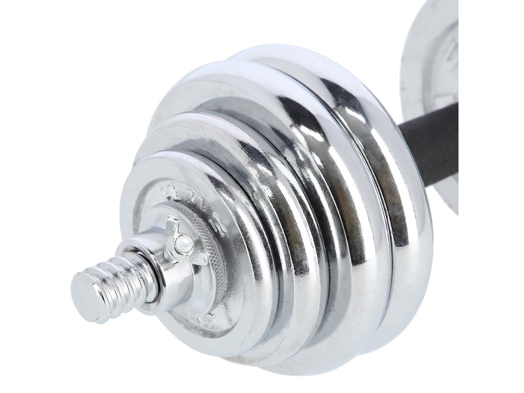 Činky jsou vyrobeny z vysoce kvalitní, chromované oceli, která je zárukou dlouhé životnosti. Kotouče se proti posunutí zajišťují šroubovacími zámky, které jsou dodatečně jištěny šroubem s křídlovou matkou.