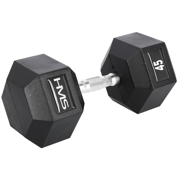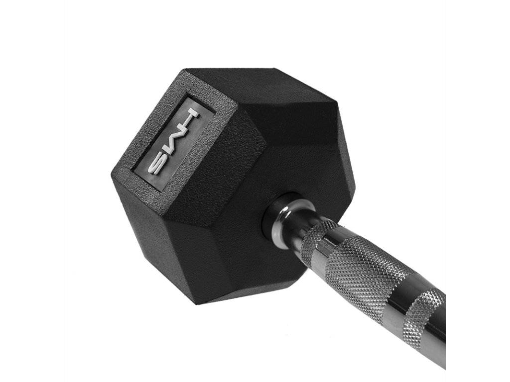 Šestihranný tvar zamezuje odkutálení činky po jejím odložení a zároveň umožňuje použití páru činek jako stálky (podpěry pro kliky) pro provádění hlubokých kliků. Tvrdý, gumový povrch chrání činku před poškozením a zajišťuje, že činky během tréninku nevydávají obtěžující, cinkavé zvuky. Chromovaný úchop je opatřen rádlováním pro jistější držení. Označení hmotnosti v kilogramech a logo výrobce je označeno pěnovým štítkem.