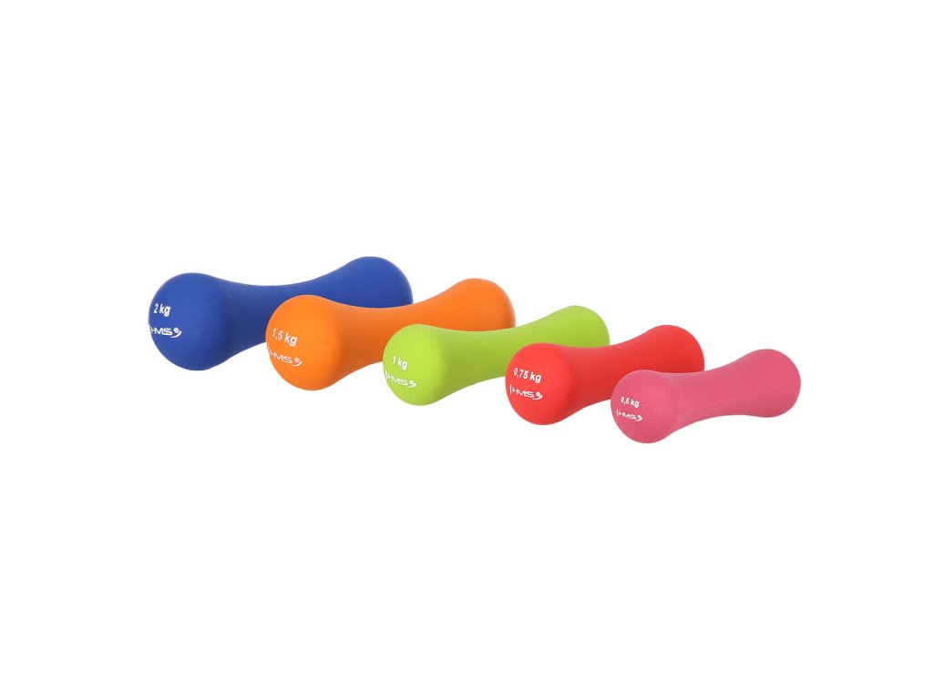 Neoprenové činky HMS v několika velikostech a hmotnostních variantách jsou vyrobeny ze speciálního materiálu. Neoprenová vrstva zajišťuje odolnost proti vlhkosti a potu.