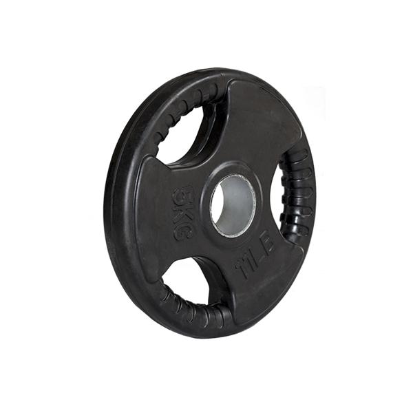Olympijský, pogumovaný kotouč HMS Tri-grip je známkou kvality a precizního provedení. Tento talíř má otvor o průměru 50 mm, je tedy vhodný pro všechny typy olympijských os. Závaží disponuje třemi držadly pro snadnou manipulaci a pogumovaný povrch prodlužuje jeho životnost.