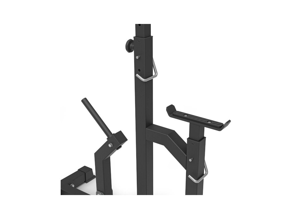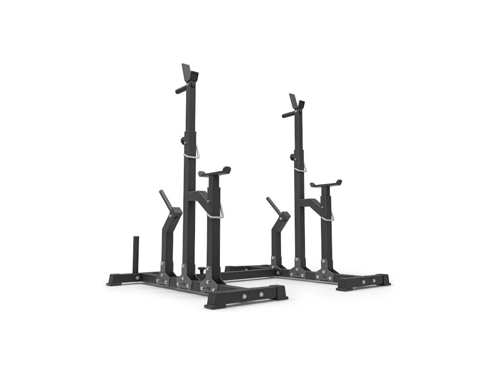 Stojan pod velkou činku MARBO MS-S104 2.0 je ideálním doplňkem k tréninku dřepů, dipů a díky bezpečnostním zarážkám je přímo předurčen k benchpressu.
