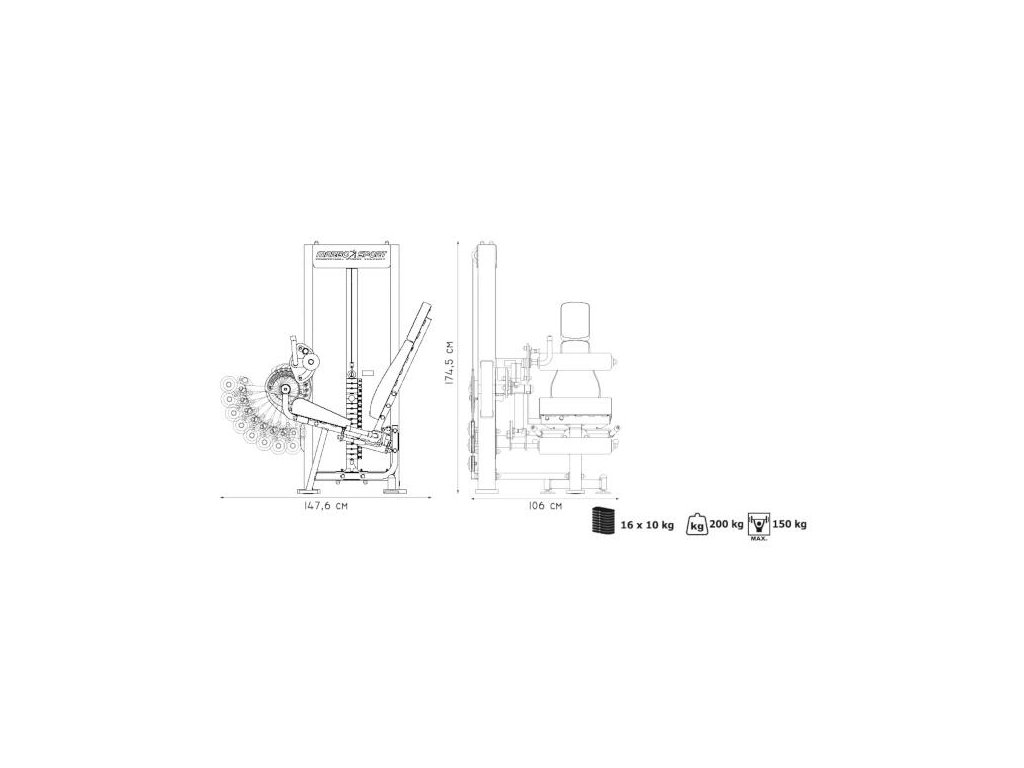 Předkopávání a zakopávání MARBO MP-U216 je nekompromisní, profesionální vybavení pro Vaší posilovnu. Pro výrobu byly zvoleny ocelové profily 120x60x3mm a 80x40x3mm, které zaručují nečekanou trvanlivost. Zátěž tvoří 16ks 10kg cihel. Celková váha závaží dodávána se strojem je tedy 160kg. Stroj disponuje širokou variabilitou nastavení. Hlavni rameno je polohovatelné v 12-ti stupních, spodní válec v 8-mi stupních, horní válec v 5-ti stupních a opěradlo má 4 polohy. Opěradlo je navíc podepřeno plynovým pístem, takže pro změnu polohy stačí stisknout páku a posunout se. Napínaní lanek se provádí regulací 4 šroubů na hlavním vodícím kole. Odpadá tak složité rozebírání stroje. Polstrovaní je ze syntetické kůže sešité režnou nití značky COATS vyplněné tvrdou pěnou, to celé ja na 3mm hrubé, ocelové desce. Tichý chod zajištuje zakrytování černým plastem, z přední části je kryt opatřen průhledem pro snadné nastavení požadovaného počtu cihel. Stroj je navíc opatřen velikou samolepkou, která instruuje cvičence, jaké cviky jdou na stroji provádět a které skupiny svalů daný cvik posiluje.