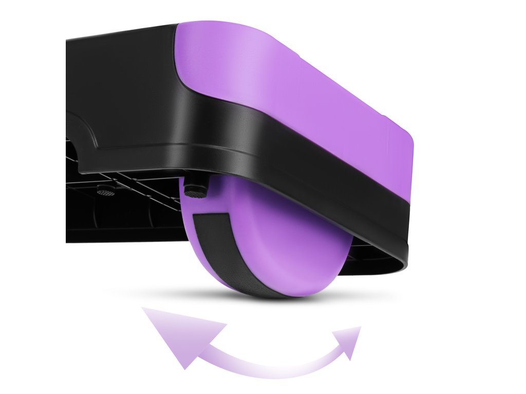Step má dvoustupňové nastavení výšky, což umožňuje přizpůsobit intenzitu tréninku aktuální úrovni pokročilosti nebo konkrétnímu cviku. První poloha bude ideální pro rozcvičení nebo rehabilitační cvičení, druhá poloha pro dynamičtější a intenzivnější kardio tréninky.