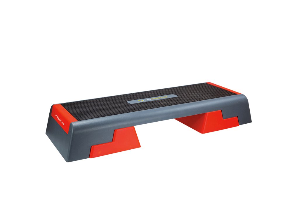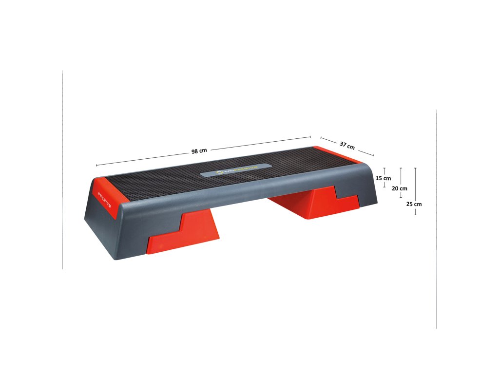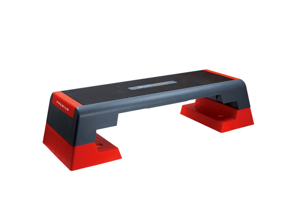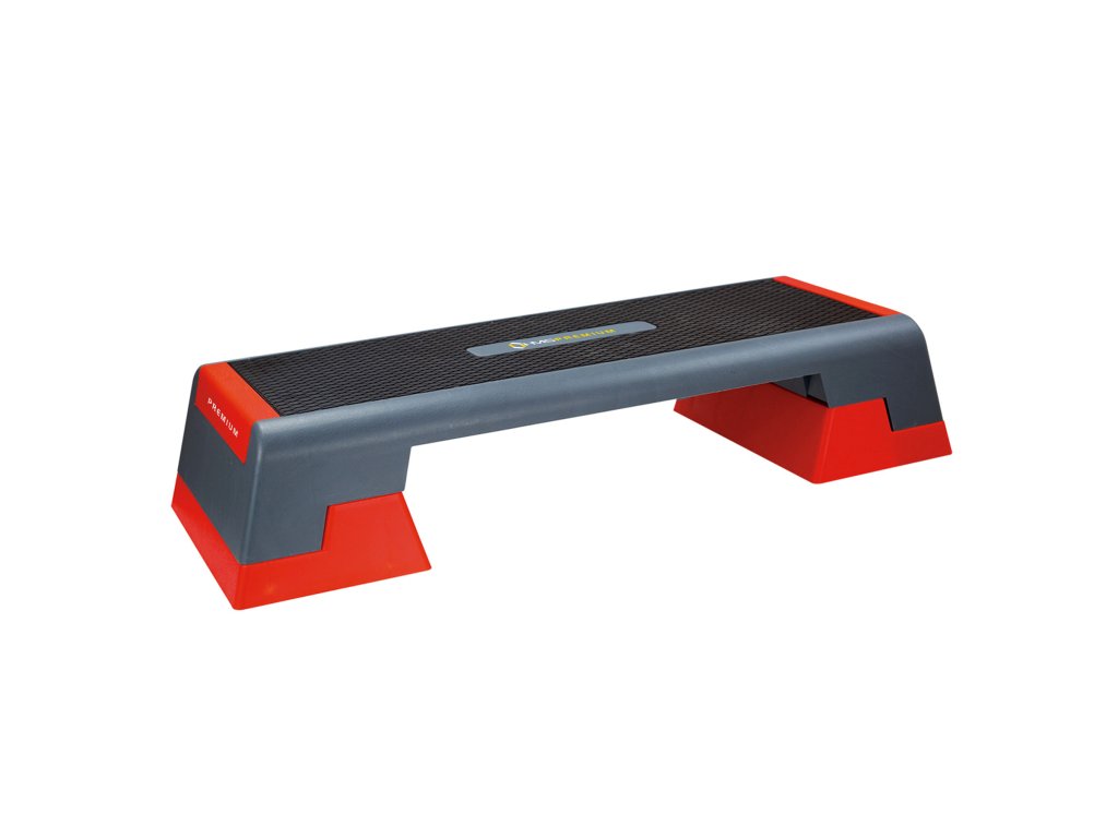 Step je vybaven protiskluzovým povrchem, který zajišťuje jistý pohyb i při dynamickém cvičení. Gumové nožičky zabraňují posunování stepu a zaručují stabilitu a bezpečnost.
