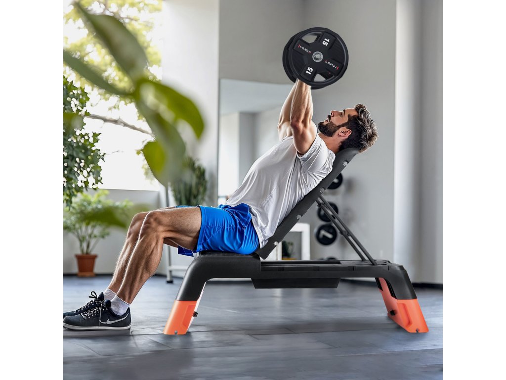 Během pár sekund můžete schůdek proměnit v plnohodnotnou posilovací lavici! Možnost nastavení opěradla do tří různých úhlů umožňuje provádět širokou škálu silových cviků, např. s činkami nebo odporovými gumami. Toto řešení kombinuje kondiční se silovým tréninkem a umožňuje vám plně využít potenciál vašeho těla.