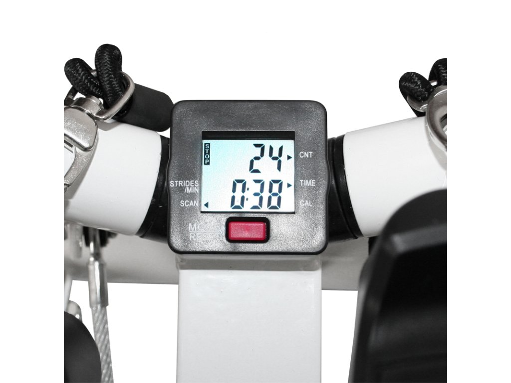 Stepper je vybaven multifunkčním počítačem s LCD displejem, který zobrazuje veškeré údaje o tréninku (čas tréninku, počet kroků za minutu, celkový počet kroků a počet spálených kalorií). Jednotka je napájena knoflíkovou baterií LR44, kterou lze snadno vyměnit.