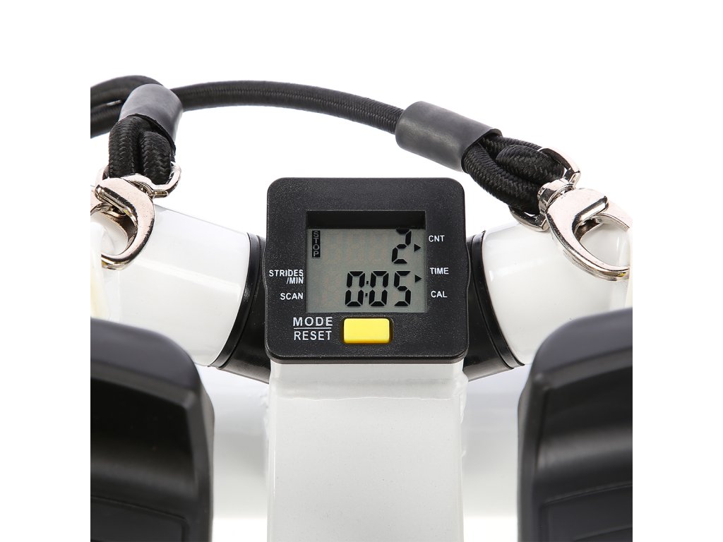 Stepper je vybaven multifunkčním počítačem s LCD displejem, který zobrazuje veškeré údaje o tréninku (čas tréninku, počet kroků za minutu, celkový počet kroků a počet spálených kalorií). Jednotka je napájena knoflíkovou baterií LR44, kterou lze snadno vyměnit.
