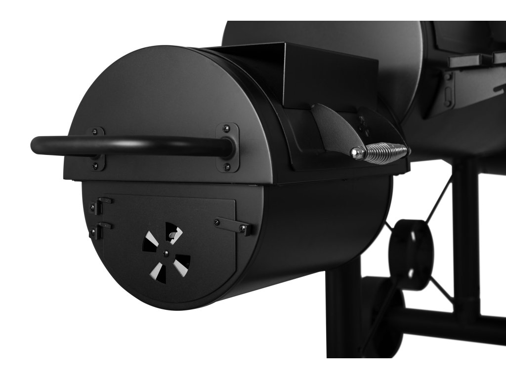 Masivní zahradní gril z kvalitního plechu má dvě topeniště a grilovací plochy s rošty 98 x 44 cm a 43 x 39 cm a samostatnou velkou udírnu. To znamená, že na rozdíl od předchozích modelů se k uzení nevyužívá jen jedna z grilovacích ploch, ale zvětšila se kapacita grilu. Můžete zároveň například grilovat zeleninu a přílohy na menší grilovací ploše, steaky a hamburgery na větší grilovací ploše a udit maso, klobásy nebo sýry v udírně. Gril G21 Kentucky BBQ na dřevěné uhlí umožňuje přípravu velkého množství pokrmů v různé intenzitě žáru současně.
