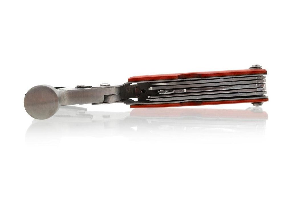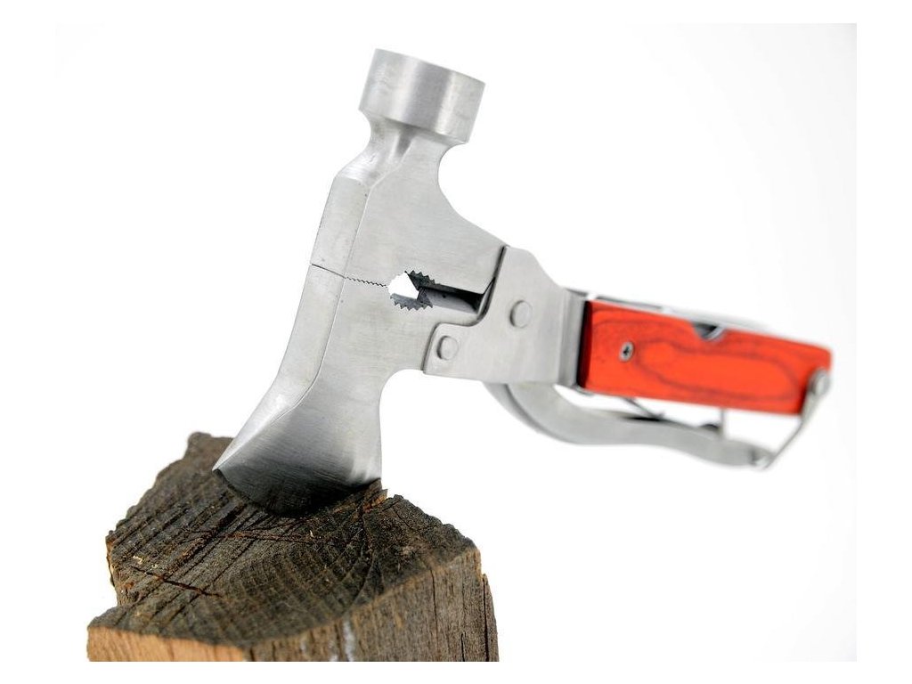 Využijte všechno nářadí a pomůcky, které nůž poskytuje. Najdete v něm kladivo, sekyrku, kombinované kleště, nůž délky 7 cm, křížový šroubovák s běžnými rozměry, pilku na dřevo, odstraňovač šupin, pilník se zakončením, plochý šroubovák, otvírák a kombinovaný imbusový nástavec.