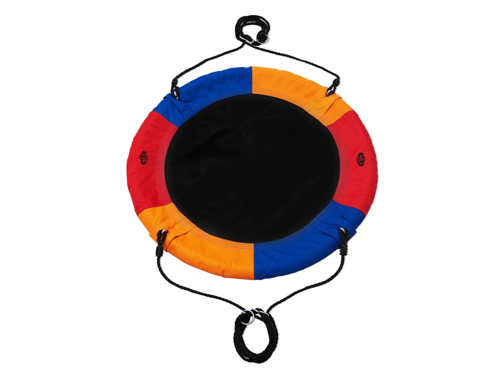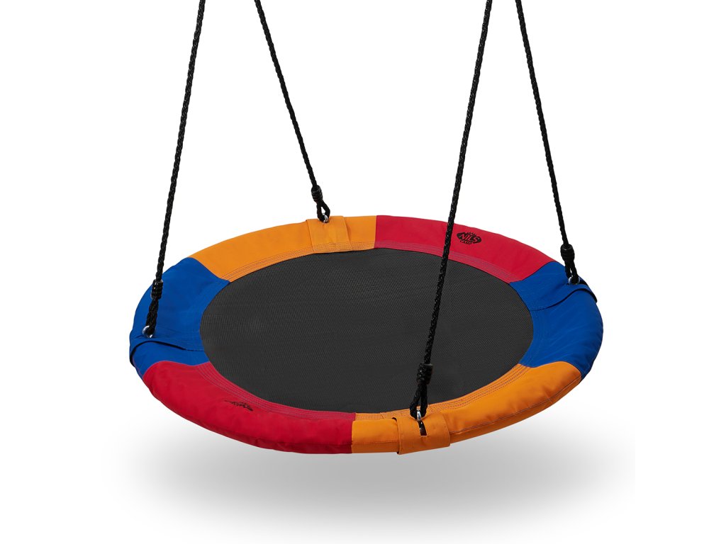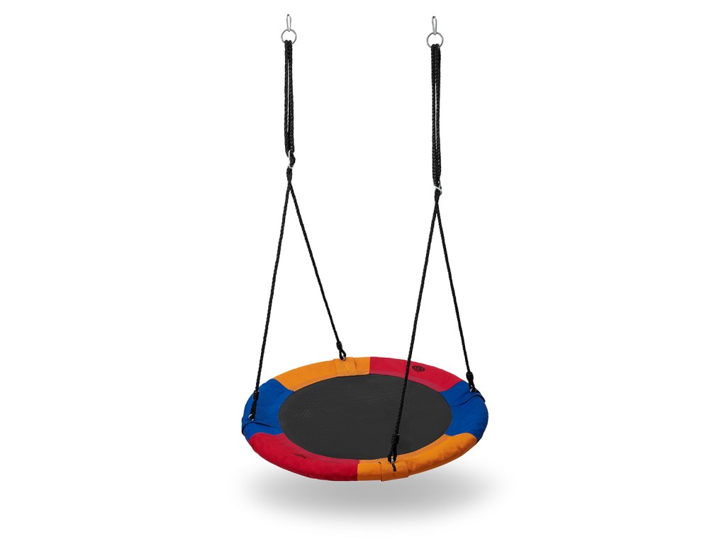 Kruhová houpačka NILS Camp NB5003 je vhodná pro použití venku. Hnízdo je vhodné jak pro houpání, tak pro odpočinek a díky průměru 90 cm a nosnosti až 150 kg se do něj pohodlně vejdou dvě děti. Houpačku drží 4 PE lana o délce 180 cm. Samotná konstrukce hnízda je tvořena 25 mm širokým, ocelovým kruhem, který je chráněn vrstvou mirelonu a přes něj je natažena polyesterová tkanina Oxford 600D.