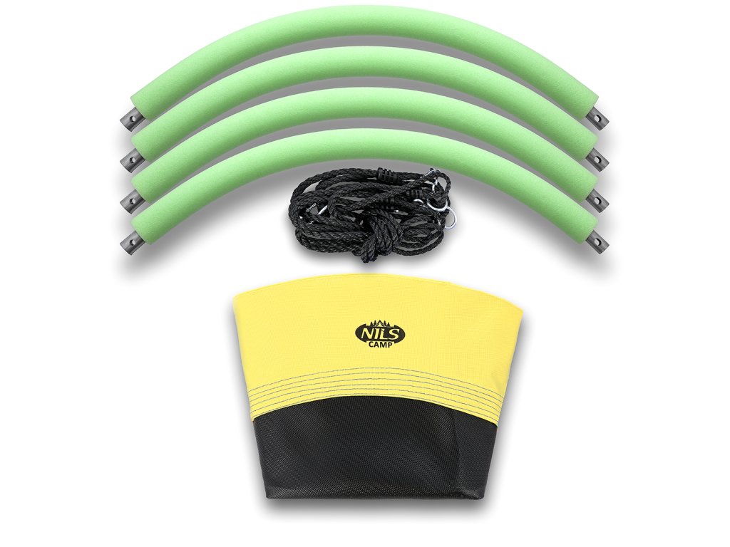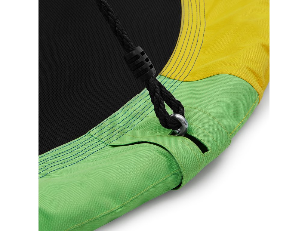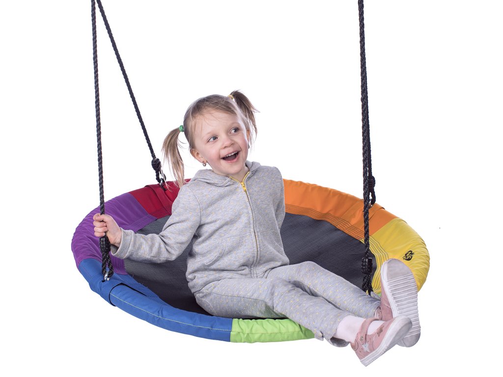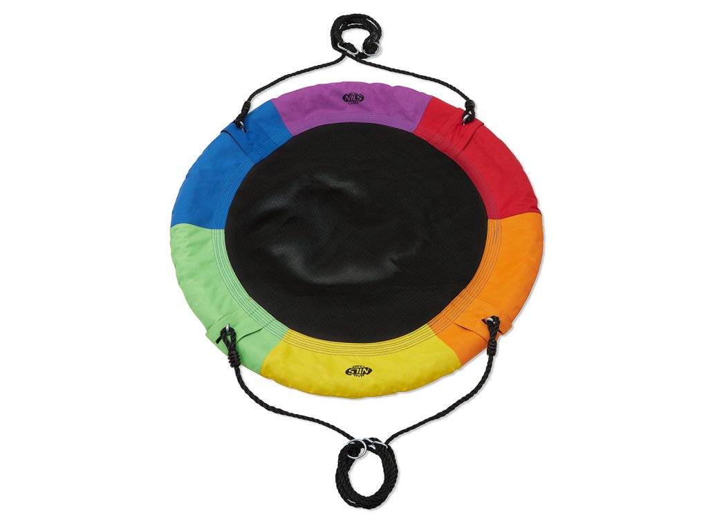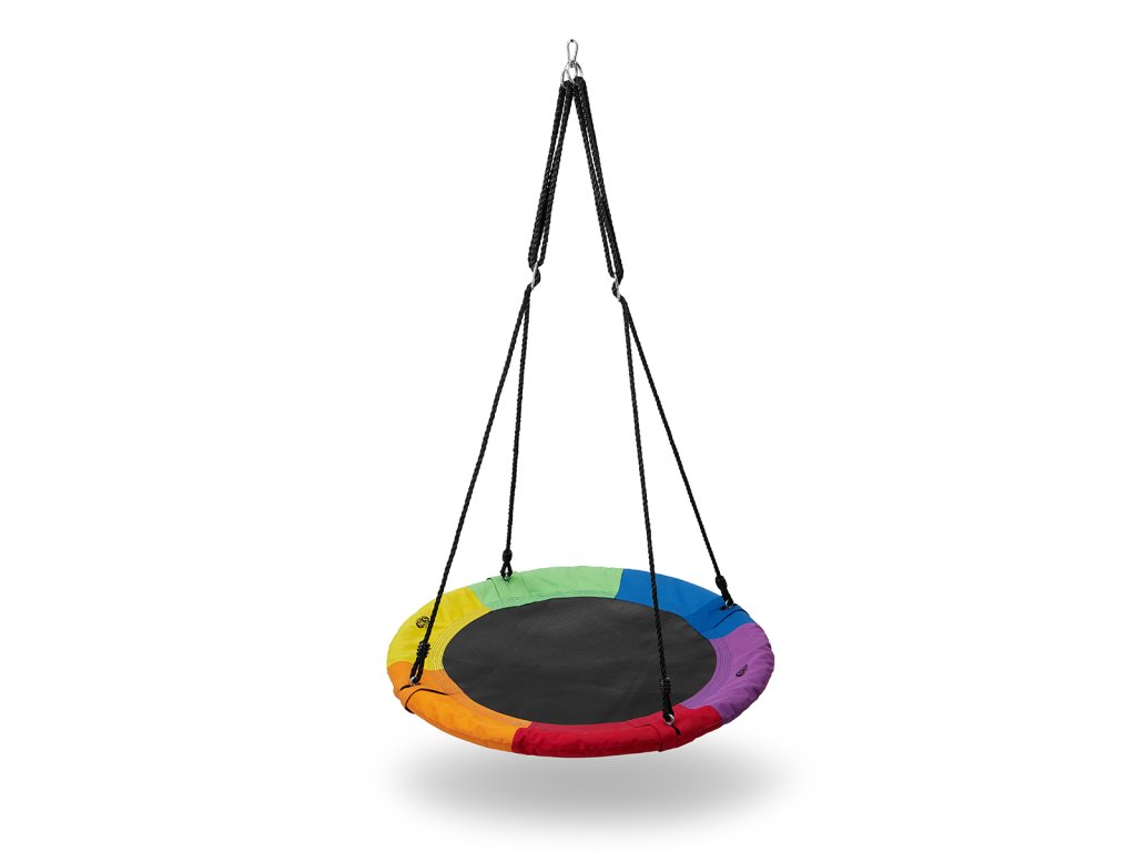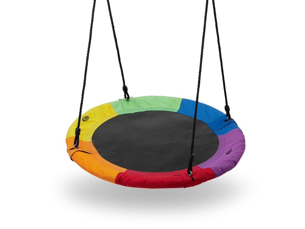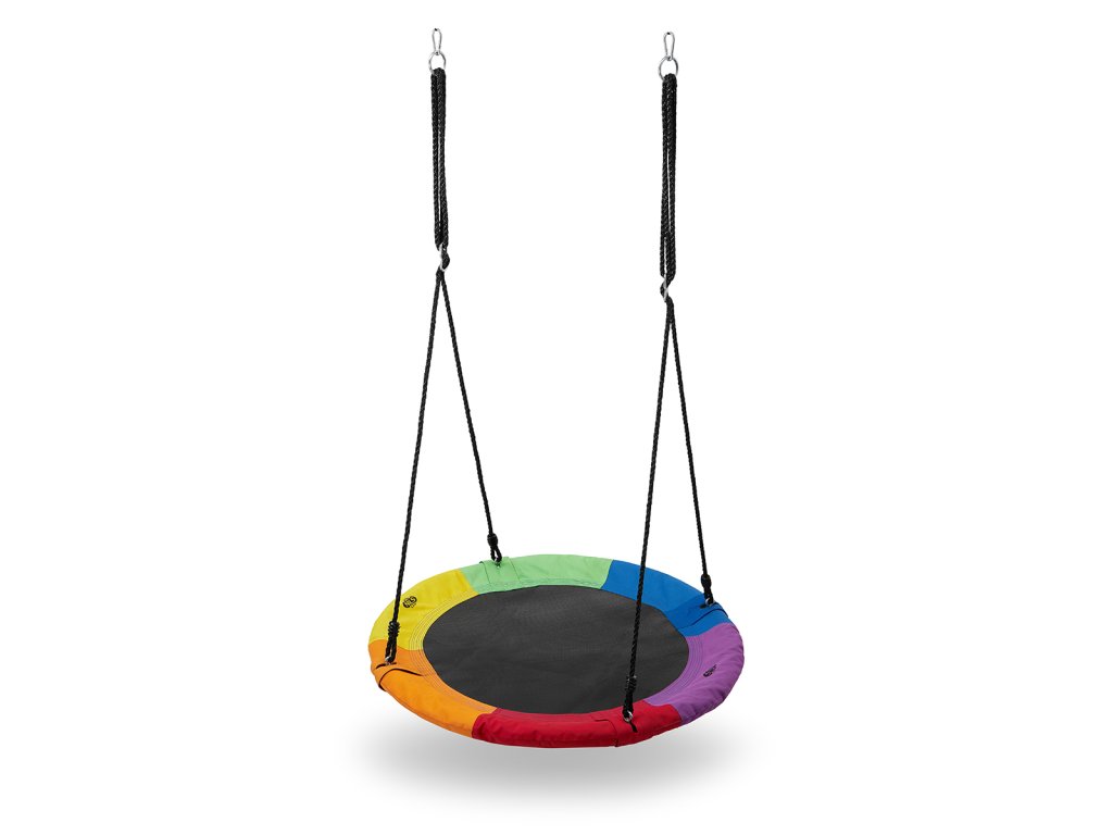 Kruhová houpačka NILS Camp NB5003 je vhodná pro použití venku. Hnízdo je vhodné jak pro houpání, tak pro odpočinek a díky průměru 90 cm a nosnosti až 150 kg se do něj pohodlně vejdou dvě děti. Houpačku drží 4 PE lana o délce 180 cm. Samotná konstrukce hnízda je tvořena 25 mm širokým, ocelovým kruhem, který je chráněn vrstvou mirelonu a přes něj je natažena polyesterová tkanina Oxford 600D.