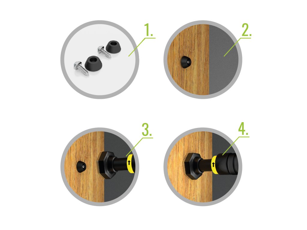 Koncovky hrazdy jsou opatřeny vrstvou silikonu, který zamezuje sesunutí hrazdy ze svého místa, pro ještě pevnější instalaci jsou součástí balení 2 gumové zarážky, které se našroubují do zárubní a hrazda se nasadí na ně. Speciální, žlutá objímka je posuvná a zamezuje povolení dotažené hrazdy. Pěnové návleky jsou opatřeny vrstvou, která odvádí pot a tím zamezuje sklouznutí dlaně. Ocelová konstrukce je ošetřena základovou barvou, antikorozní vrstvou a práškovým lakem.