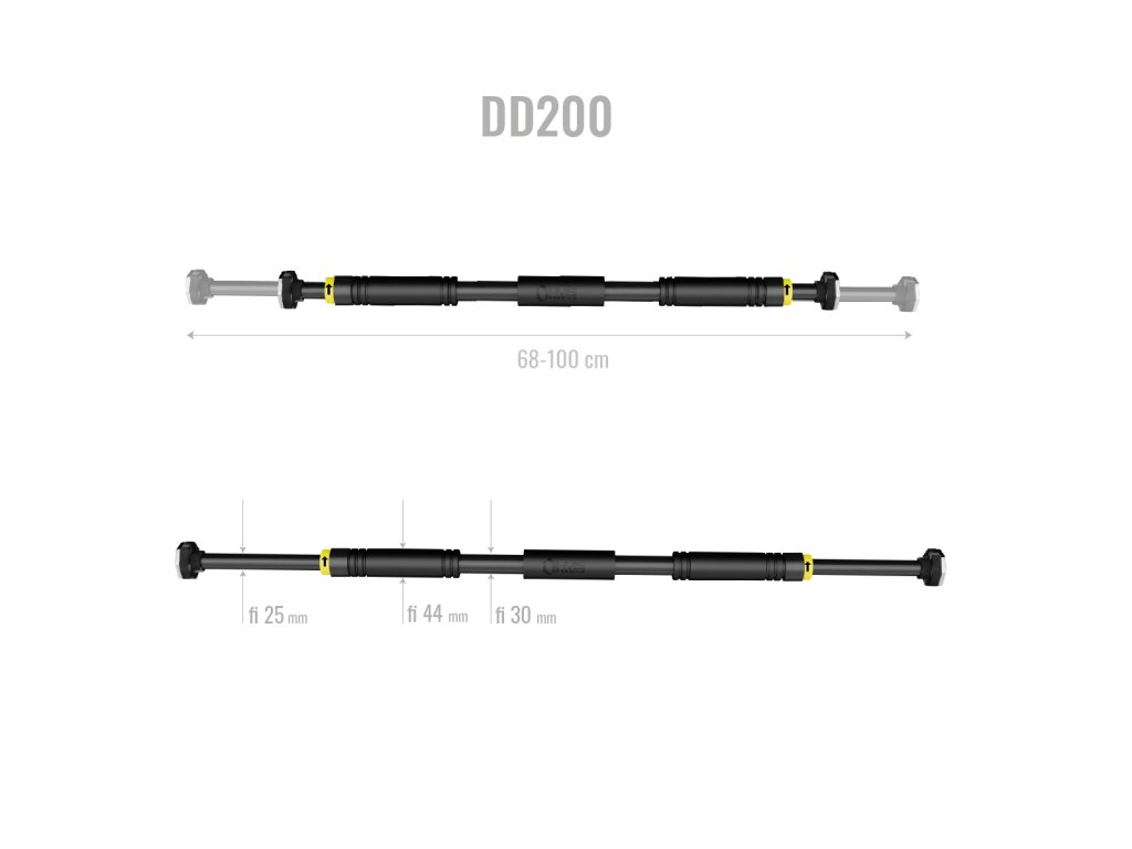 Hrazda do dveří HMS Premium DD200 je ideálním řešením, pokud nemáte dostatek prostoru pro pořízení stacionární hrazdy. Model DD200 disponuje nastavitelnou délkou v rozsahu od 66,5 do 100 cm a nosností 250 kilogramů.