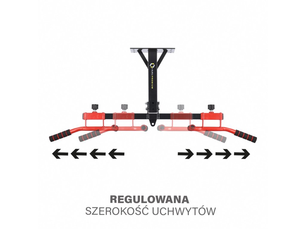 DD10 umožňuje změnu úchopu díky přidaným rukojetím – lze provádět přítahy nadhmatem, podhmatem i neutrálním úchopem. Navíc má nastavitelný rozestup rukojetí (5 pozic), což umožňuje trénink pod různými úhly a vede k symetrickému rozvoji svalů.