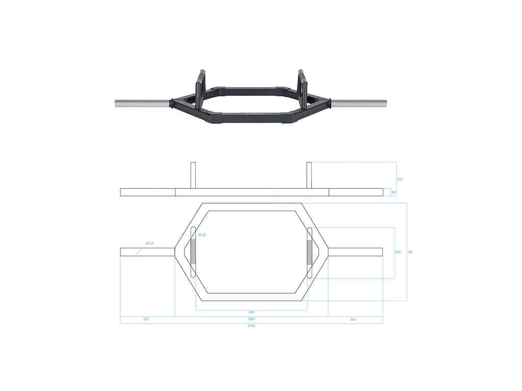 Olympijská osa HEX GHX02 HMS se speciálním hexagonálním tvarem. Osa má vroubkovanou rukojeť, díky které již nemusíte mít strach, že Vám hřídel vyklouzne z ruky při následných opakováních. Design hřídele je založen na šestiúhelníku, díky kterému při tréninku nedochází k přetěžování páteře a kolen. Velikou předností je fakt, že cvičenec během cvičení funguje uvnitř hřídele, což má za následek minimalizování jakéhokoliv úrazu. Rám je vyroben z trubek o průměru 40 mm a tloušťce stěny 2,5 mm. Maximální zatížení až 450 kg. Hřídel je vhodná jak pro profesionály, tak pro právě začínájící cvičence.