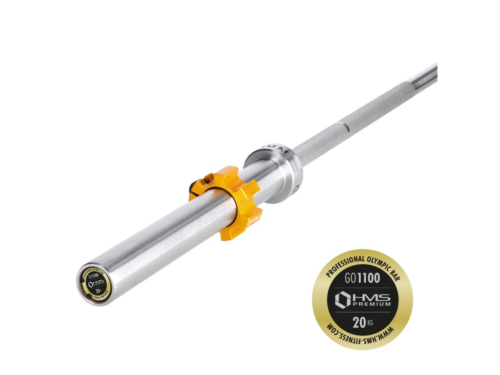 Olympijská osa HMS Premium GO1100 je vyrobena ze speciální chromované oceli, která prošla procesem kalení. Osa GO1100 se vyznačuje pevností v kombinaci s dokonalou pružností. Součástí soupravy jsou dva plastové uzávěry ZG1500. Pevné a pohodlné uchopení hřídele je zajištěno vroubkováním na povrchu. Maximální zatížení je 1100 kg. Průměr úchopové části je 30 mm a zajišťuje vysokou odolnost a pohodlí během tréninku. Použitý proces chromování hřídele je zárukou zachování jejího vzhledu po dlouhou dobu jejího používání a také je nejlepší ochranou proti korozi. Olympijská hřídel HMS Premium GO1100 má 10 jehličkových ložisek (5 na každé straně), které umožňují hladké a plynulé otáčení rukávů na hřídeli. Její konstrukce snižuje napětí na koncích válečků, což má za následek vyšší životnost ložisek. Navzdory svého malého průřezu mají jehličková ložiska vysokou tuhost a nosnost. Dva plastové uzávěry nacházející se v balení zaručují stabilní rozložení zátěže na hřídeli během tréninku. Uzávěry mají ve vnitřní části gumové elementy bránící tomu, aby se závaží povolilo.