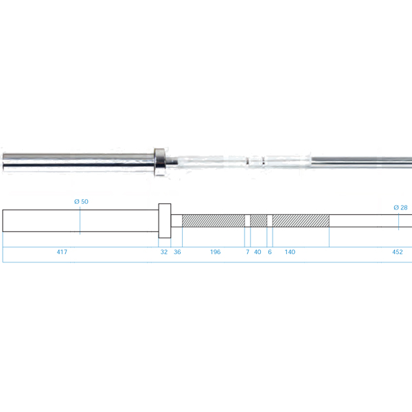 Průměr úchopové části je 30 mm a zajišťuje vysokou odolnost a pohodlí během tréninku. Použitý proces chromování hřídele je zárukou zachování jejího vzhledu po dlouhou dobu jejího používání a také je nejlepší ochranou proti korozi.