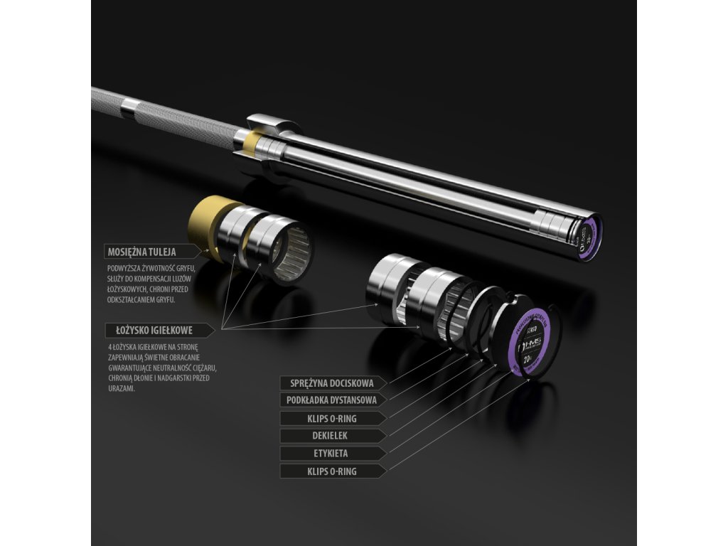 Olympijská hřídel GO450 HMS byla vyrobena ze speciální chromované oceli, která prošla procesem kalení. Produkt HMS se vyznačuje pevností v kombinaci s dokonalou pružností. Součástí soupravy jsou dva plastové uzávěry ZG1000.. Pevné a pohodlné uchopení hřídele je zajištěno vroubkováním na povrchu. Maximální zatížení je 450 kg.
