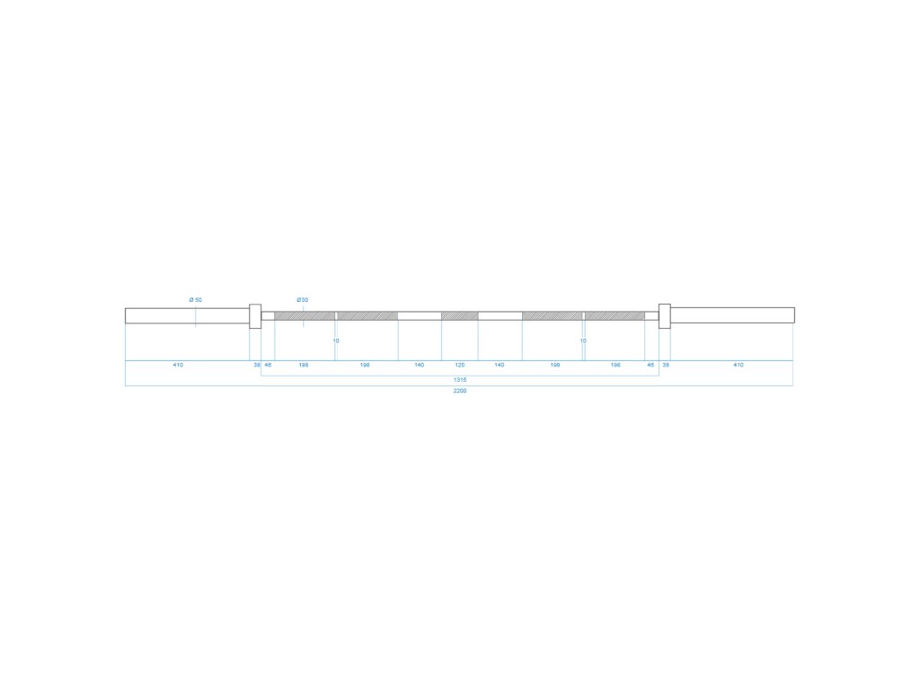 Průměr úchopové části je 30 mm a zajišťuje vysokou odolnost a pohodlí během tréninku. Použitý proces chromování hřídele je zárukou zachování jejího vzhledu po dlouhou dobu jejího používání a také je nejlepší ochranou proti korozi.