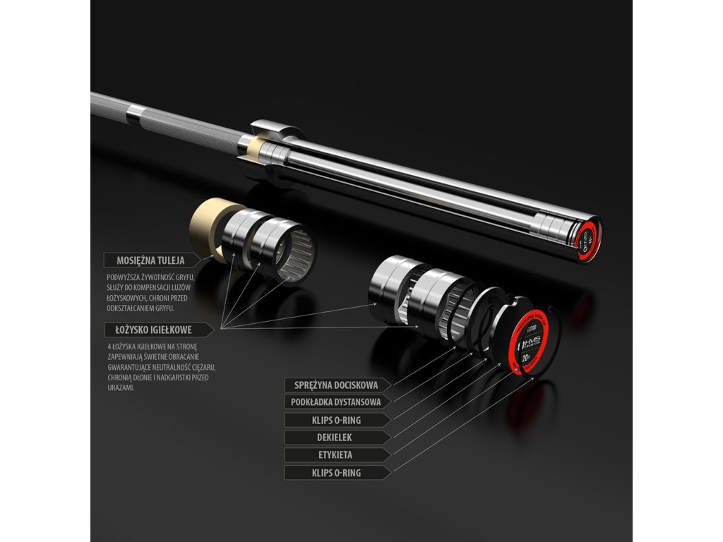 Olympijská hřídel GO700 HMS má 8 jehličkových ložisek (4 na každé straně), které umožňují hladké a plynulé otáčení rukávů na hřídeli. Její konstrukce snižuje napětí na koncích válečků, což má za následek vyšší životnost ložisek. Navzdory svého malého průřezu mají jehličková ložiska vysokou tuhost a nosnost.