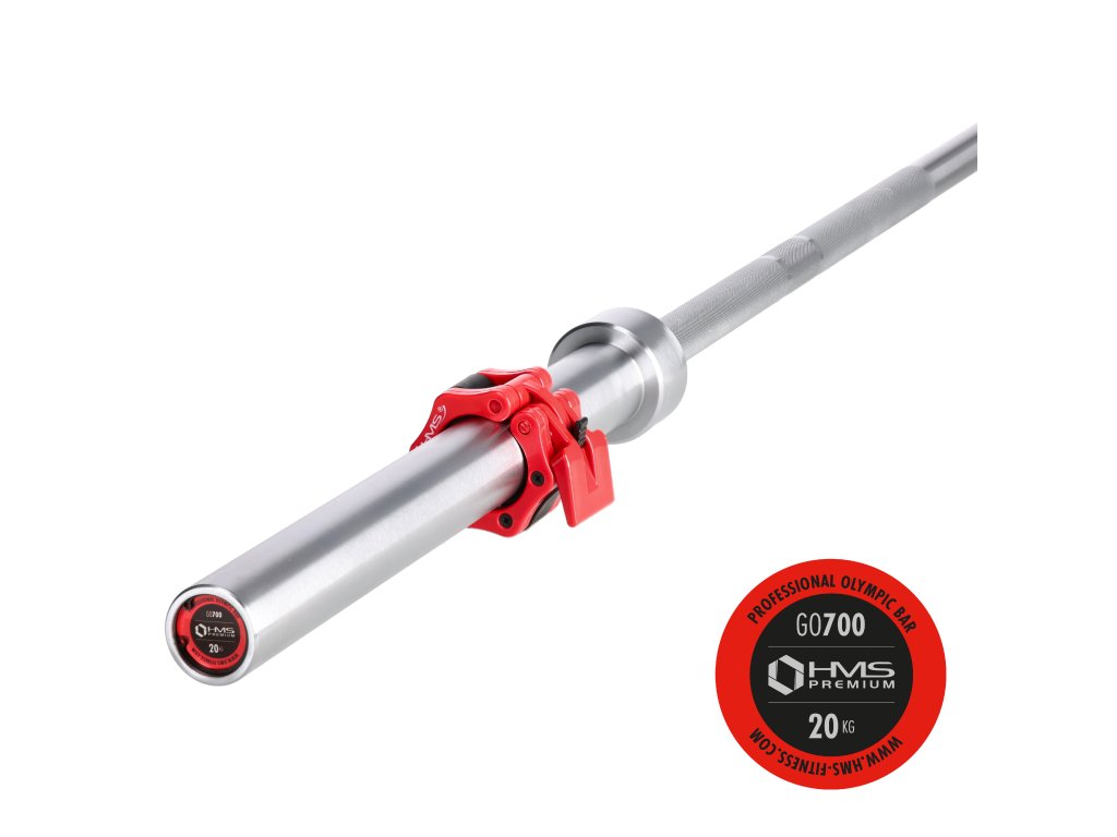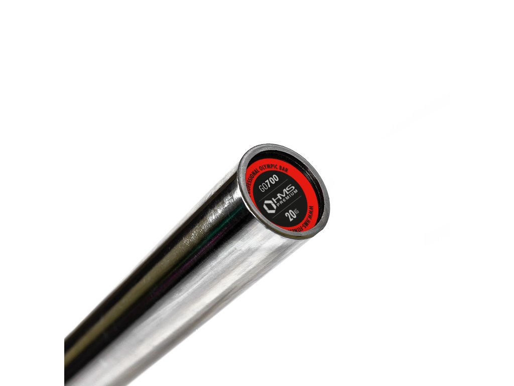 Olympijská hřídel GO700 HMS byla vyrobena ze speciální chromované oceli, která prošla procesem kalení. Produkt HMS se vyznačuje pevností v kombinaci s dokonalou pružností. Součástí soupravy jsou dva plastové uzávěry ZG1000. Pevné a pohodlné uchopení hřídele je zajištěno vroubkováním na povrchu. Maximální zatížení je 700 kg.