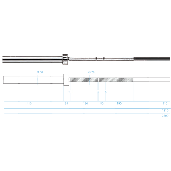 Průměr úchopové části je 30 mm a zajišťuje vysokou odolnost a pohodlí během tréninku. Použitý proces chromování hřídele je zárukou zachování jejího vzhledu po dlouhou dobu jejího používání a také je nejlepší ochranou proti korozi.