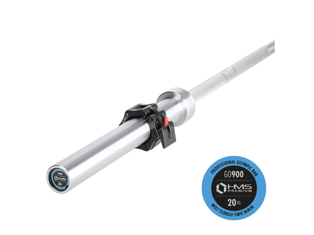 Olympijská hřídel HMS Premium GO900 je vyrobena ze speciální chromované oceli, která prošla procesem kalení. Osa GO900 se vyznačuje pevností v kombinaci s dokonalou pružností. Součástí soupravy jsou dva plastové uzávěry ZG1000. Pevné a pohodlné uchopení hřídele je zajištěno vroubkováním na povrchu. Maximální zatížení je 900 kg.