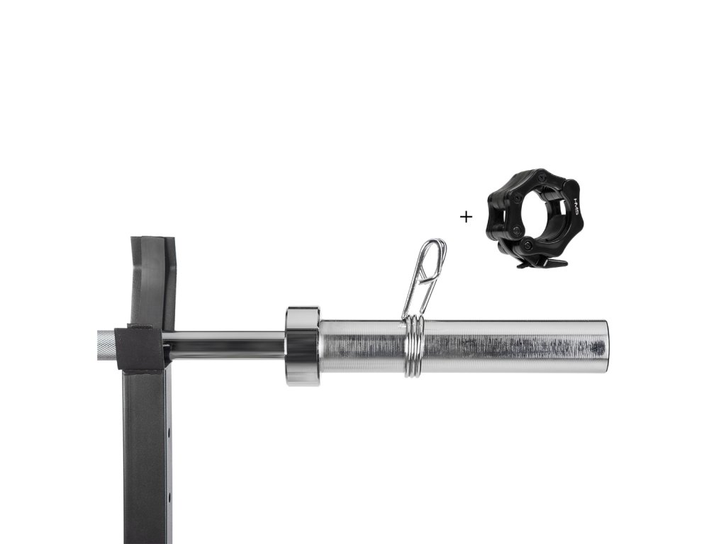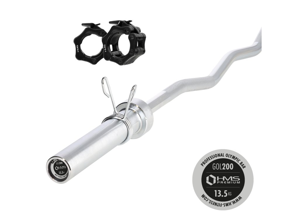 Olympijská lomená osa GOL200 HMS Premium je vyrobena ze speciální chromované oceli, která prošla procesem kalení. Výrobek značky HMS Premium se vyznačuje pevností v kombinaci s ideální pružností. Jeho PSI je 140 000 a sada obsahuje dva pružinové uzávěry a dva rychlouzávěry ZG1000.