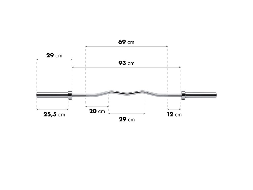 Bezpečné a pohodlné uchopení osy zajišťuje pečlivé vroubkování . Maximální nosnost je 200 kilogramů. Průměr úchopové části 28 milimetrů zase zajišťuje vysokou odolnost a pohodlí při cvičení.