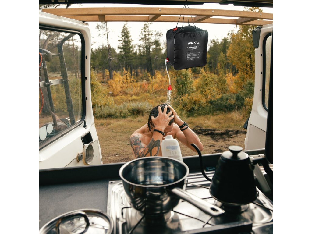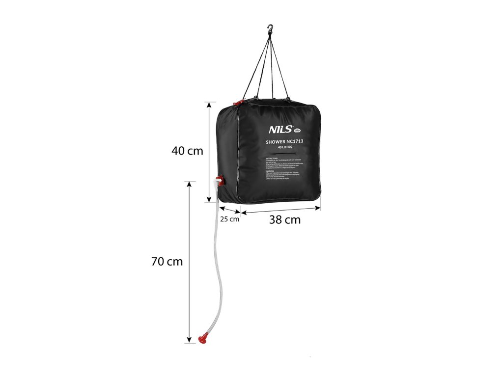 NILS Camp NC1713 je solární, cestovní sprcha s objemem 40 litrů, která se skvěle hodí pro všechny, kdo tráví čas kempováním, cestováním nebo kdekoli, kde není přístup k tekoucí vodě.